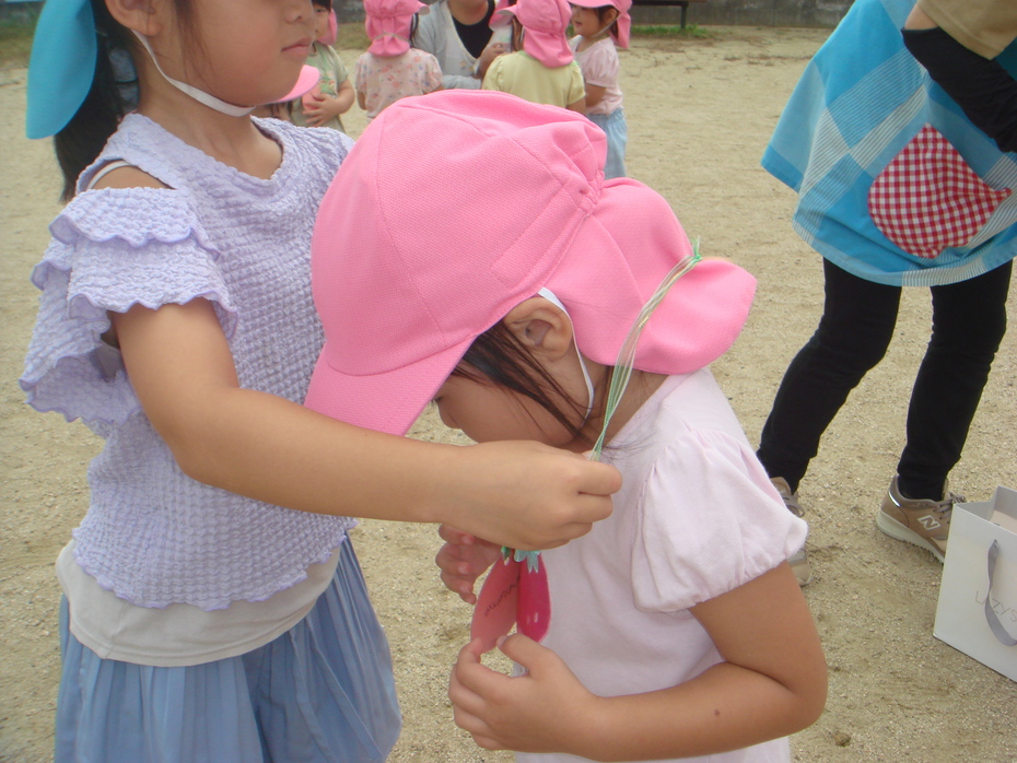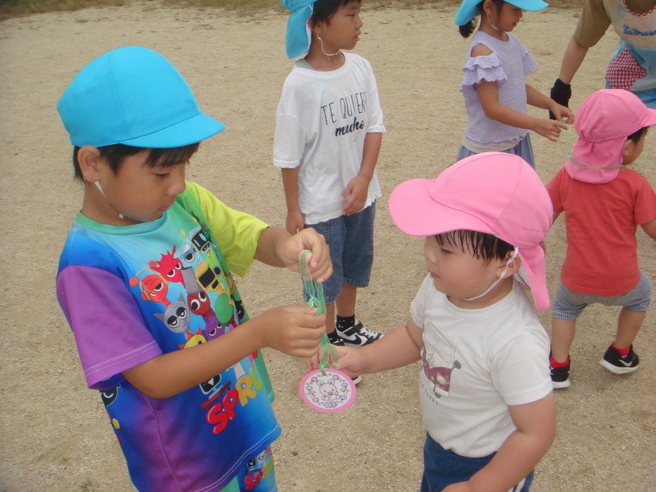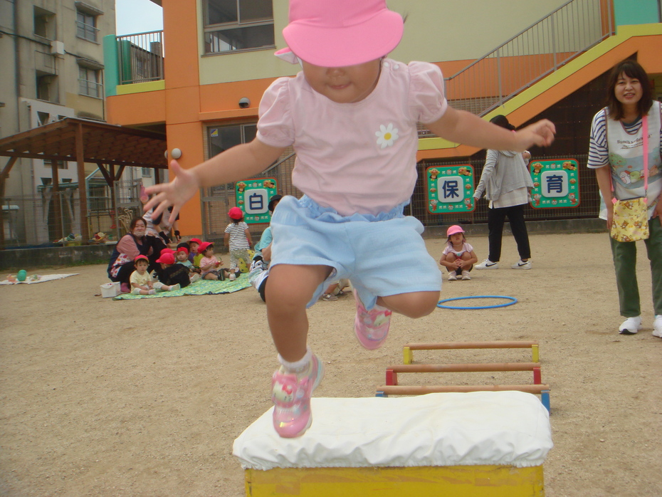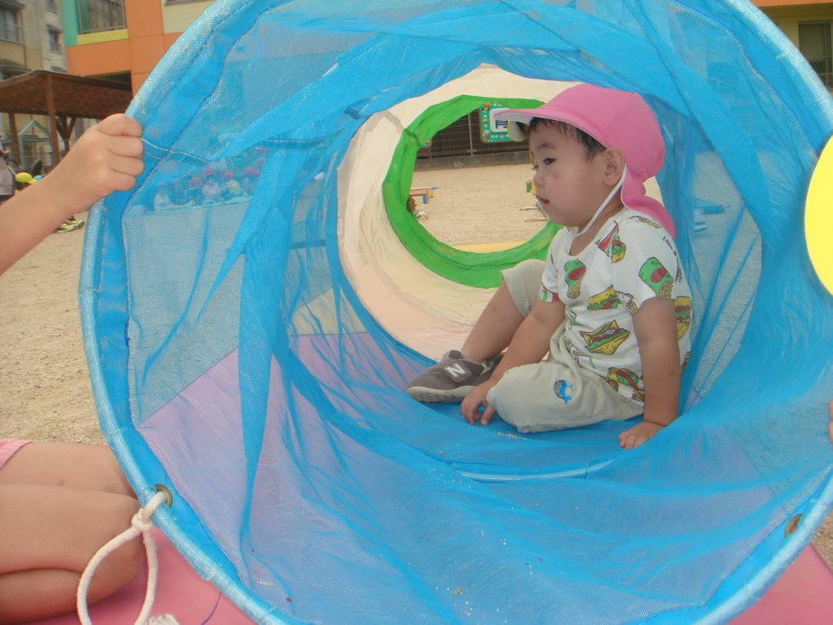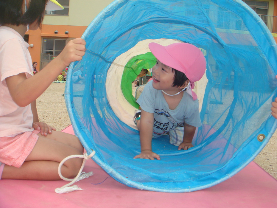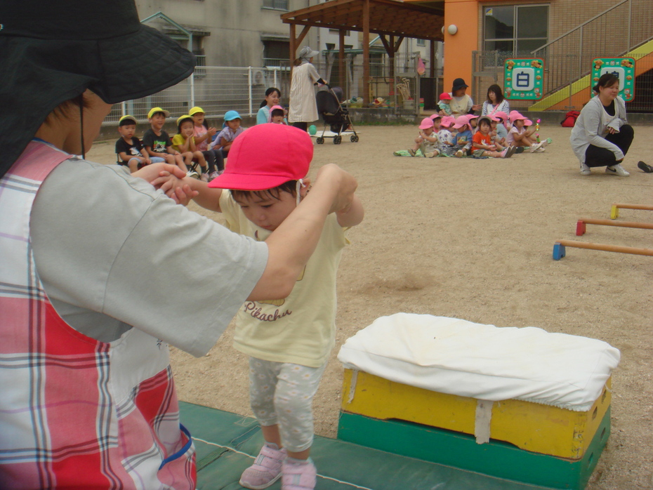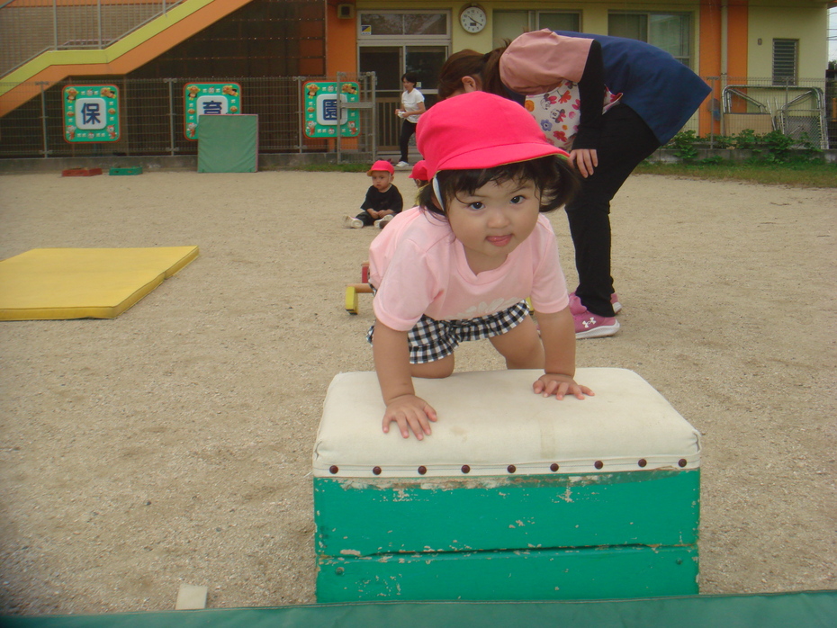 ぞうぐみ・きりんぐみ・ぱんだぐみに応援してもらったり、お手伝いしてもらいながらいろいろな用具や運動に挑戦しました。張り切ってする姿と恥ずかしがってしまう姿といろんな表情を見せていました。 | ||