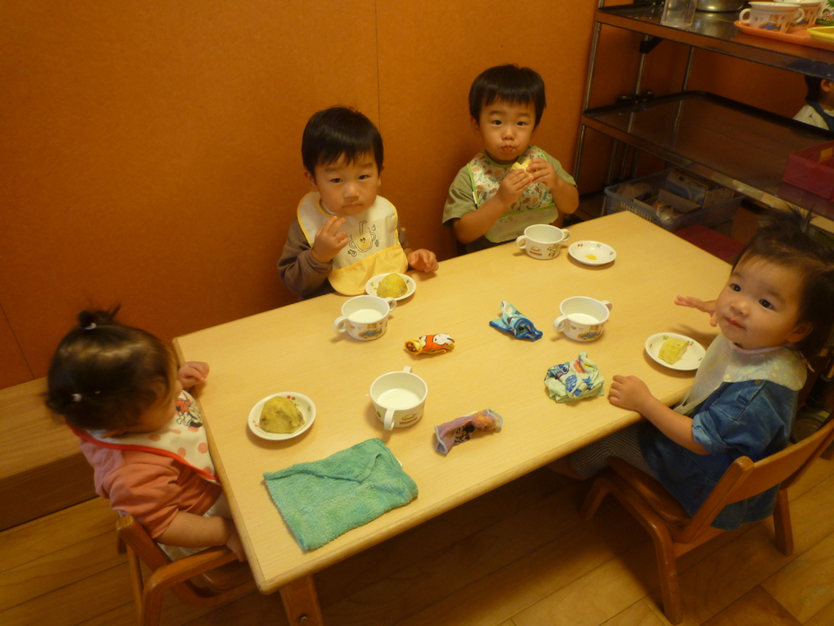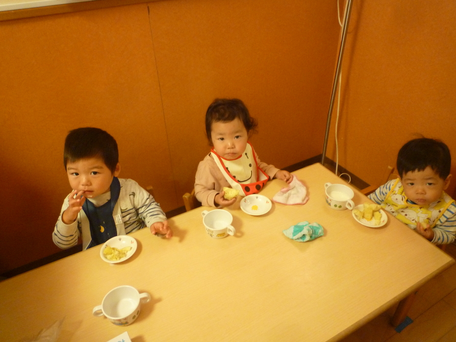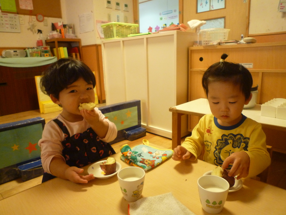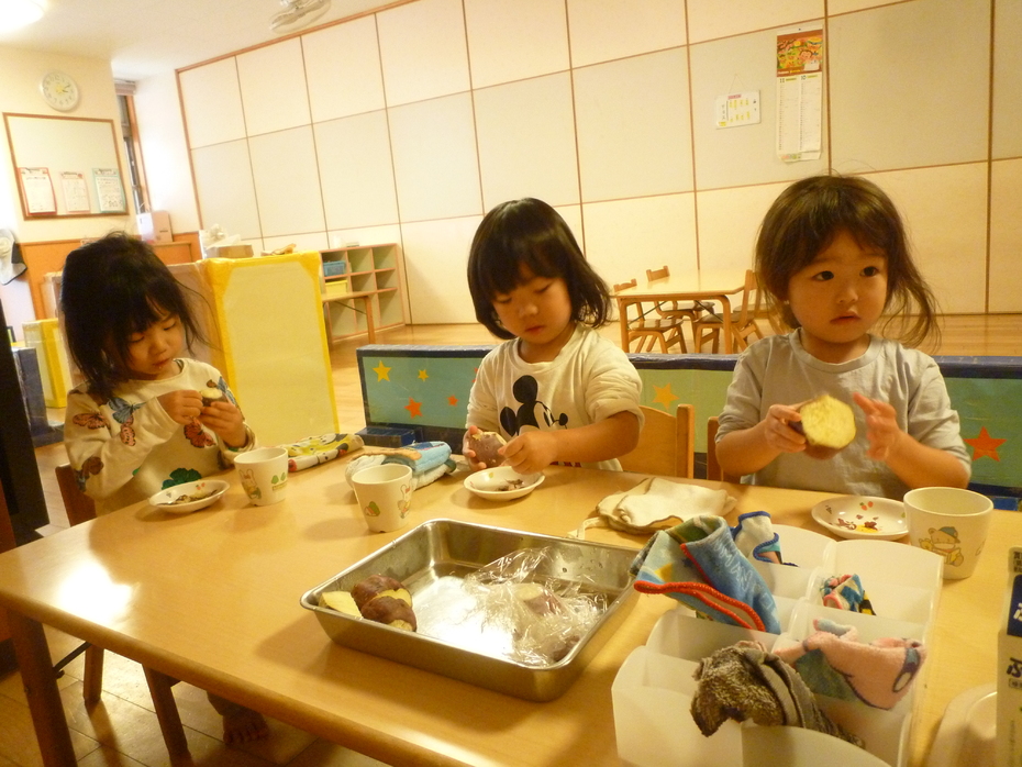 朝、触ったサツマイモがおやつで出てきました! | ||