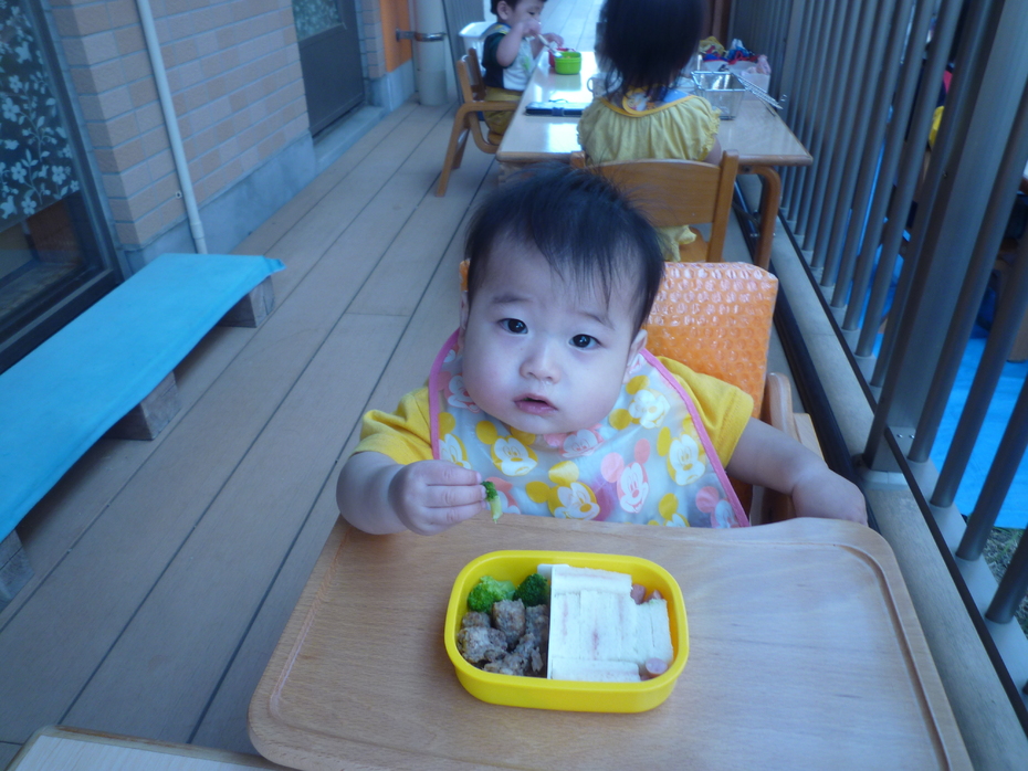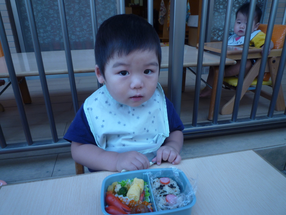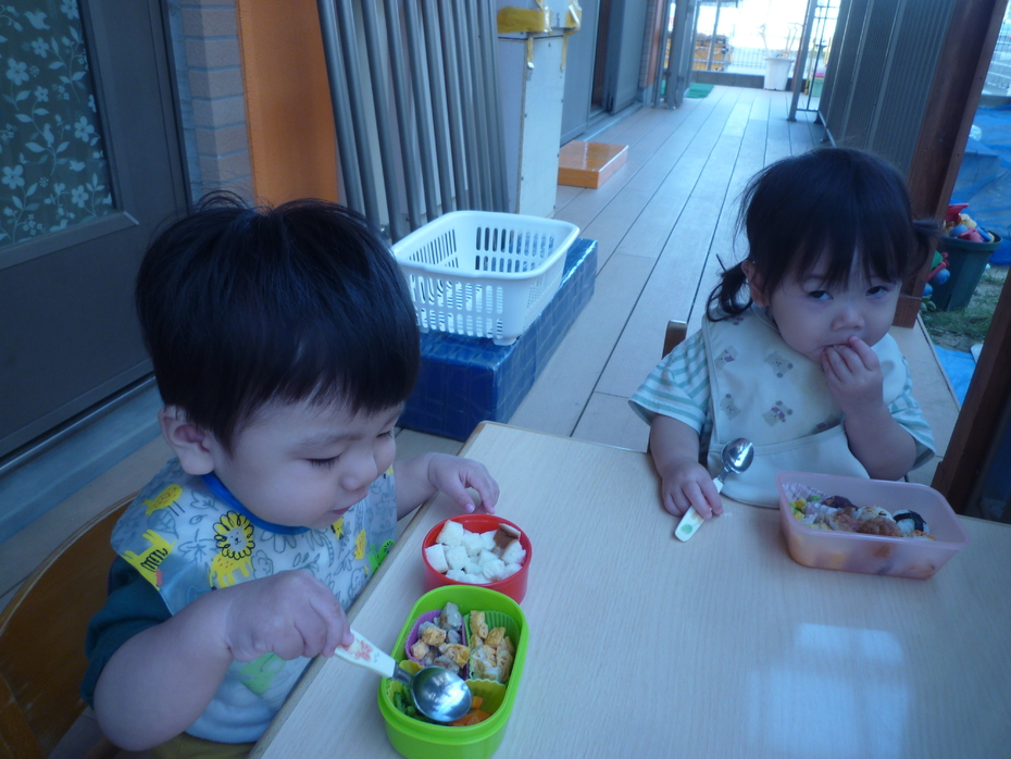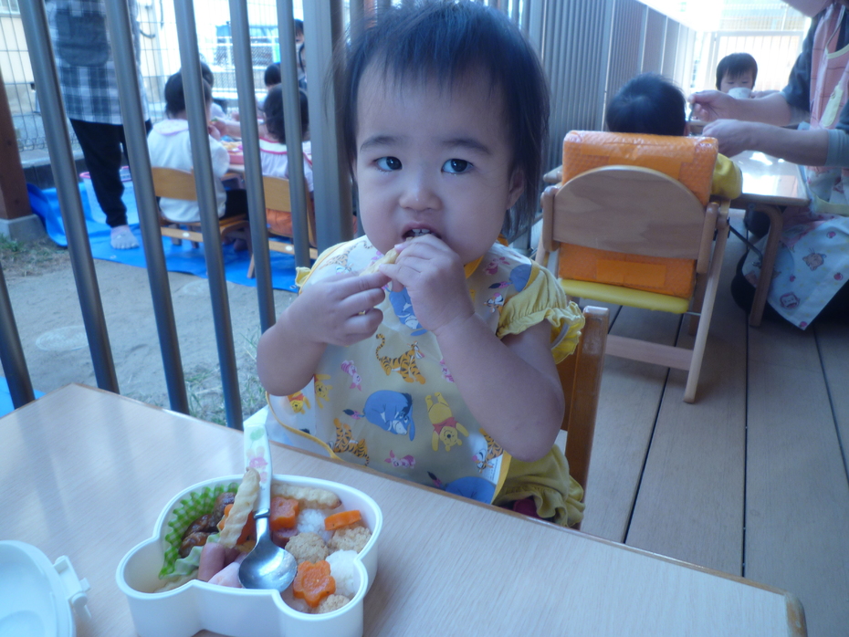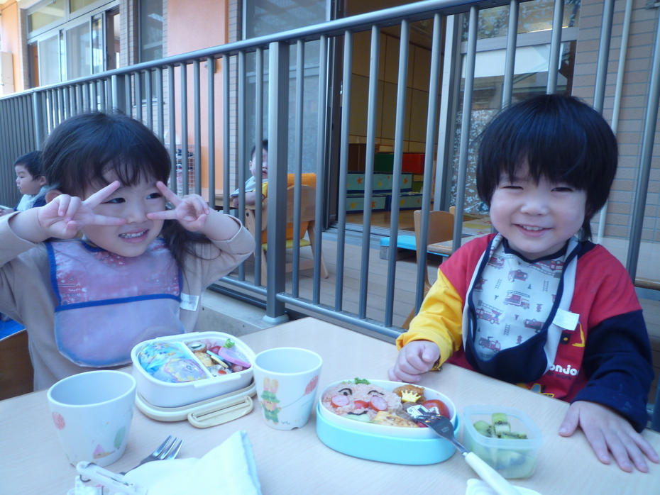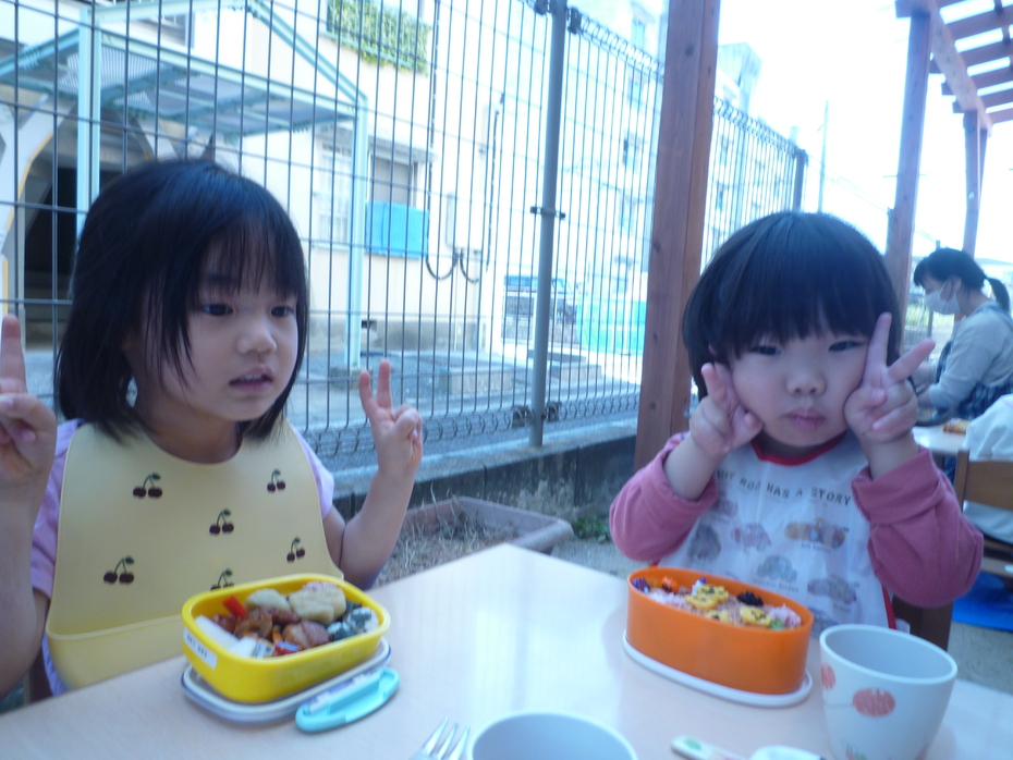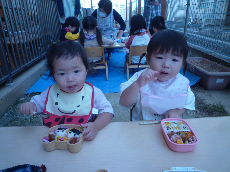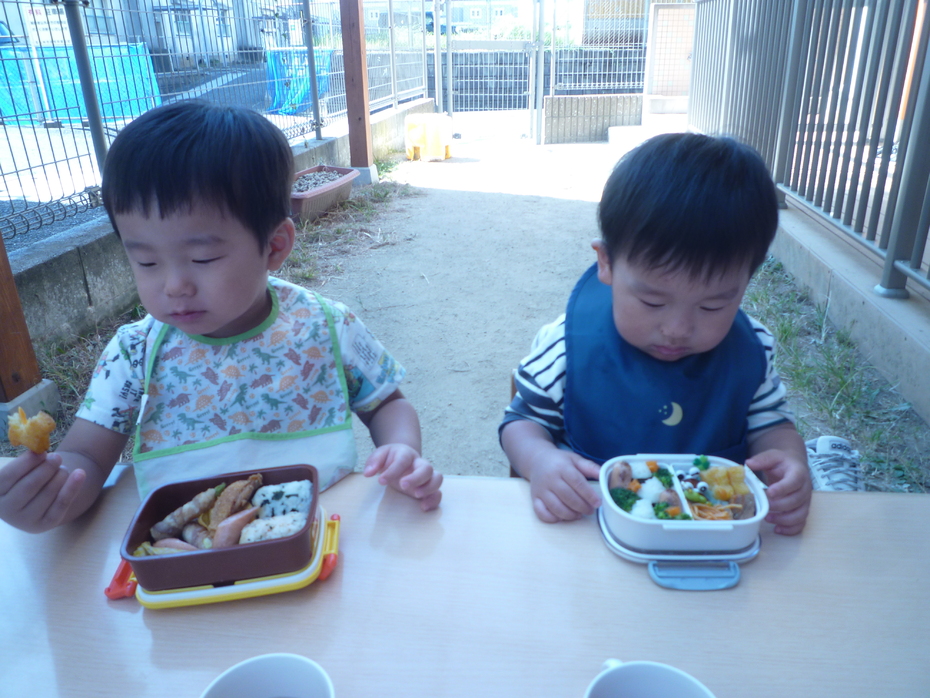 いつもと違う外での食事!おうちの人に作ってもらったお弁当!すごく嬉しそうな子ども達でした!! | ||