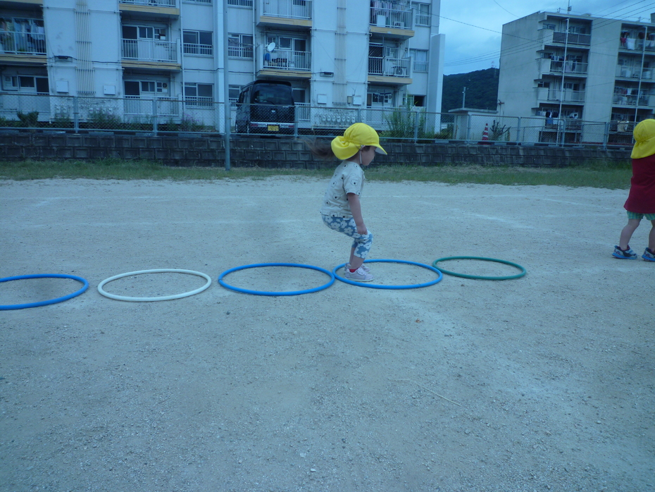 フープをピョンピョン渡ったり… | ||