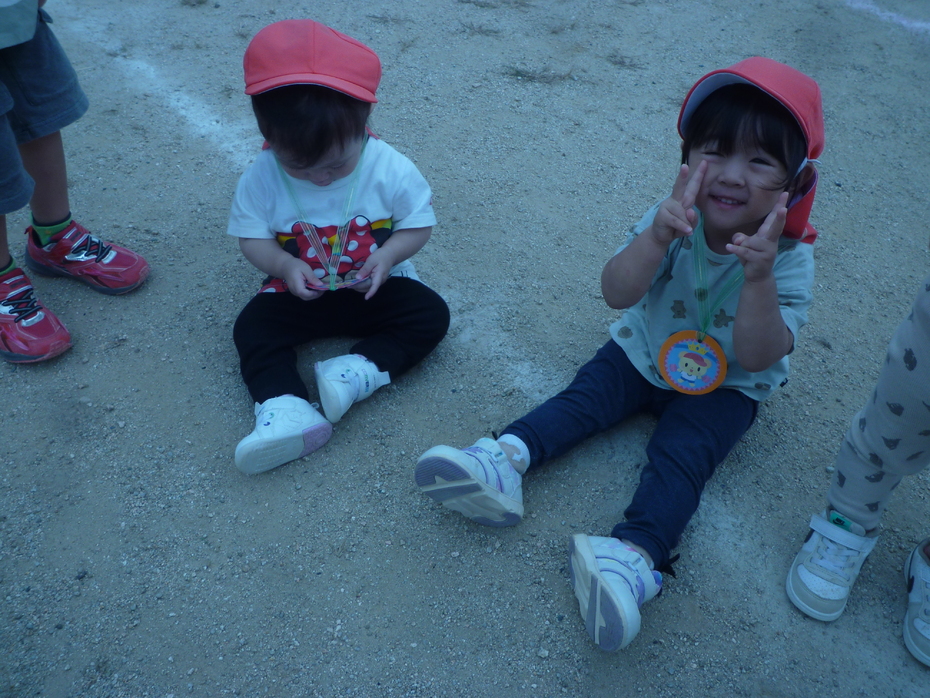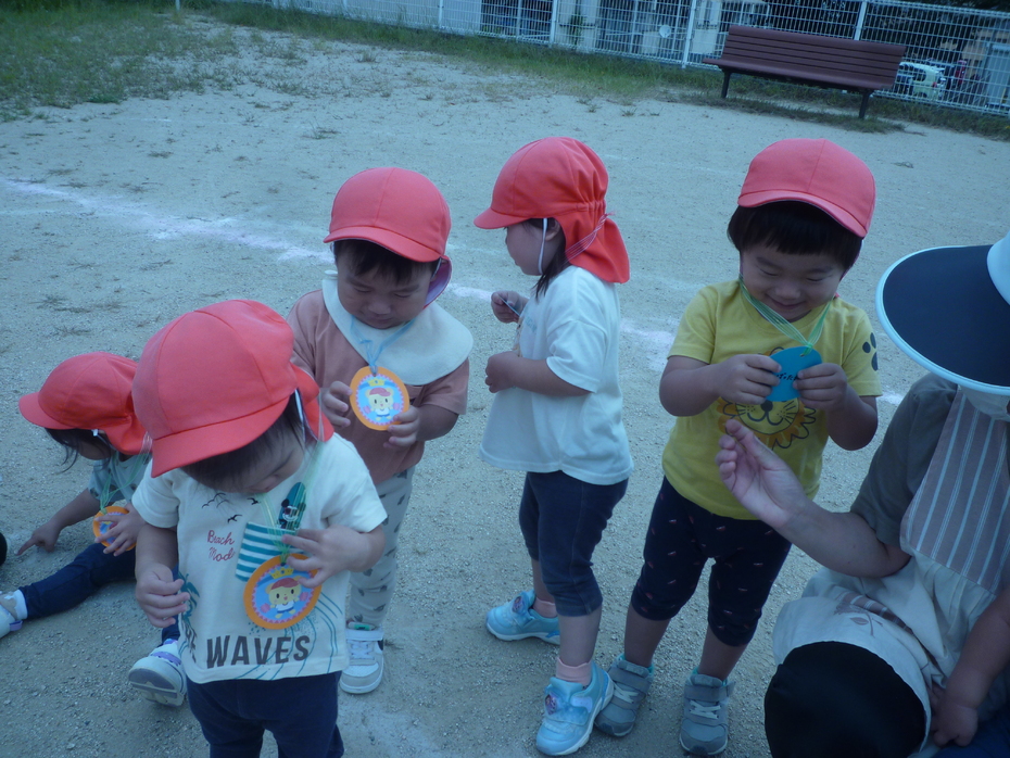頑張ったごほうびにメダルをもらい、とっても嬉しそうでした♪ | ||