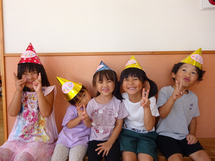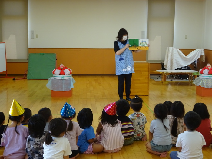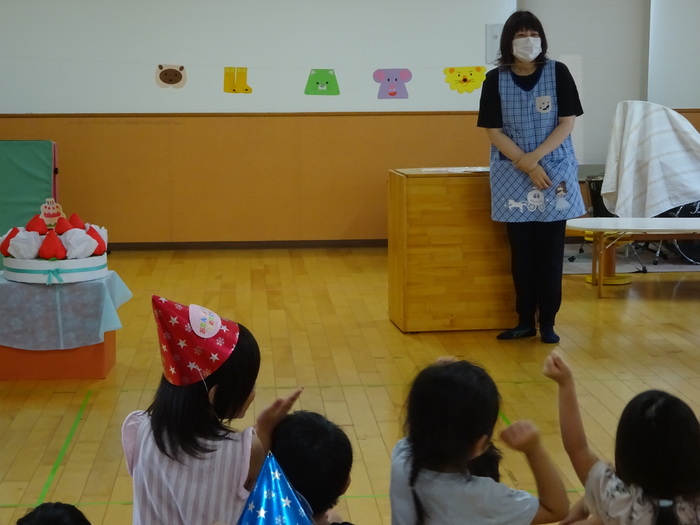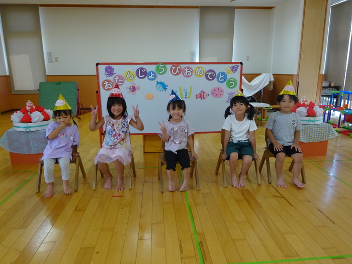 7月の誕生者は5名でした。お友達の紹介、『夏のお出かけ』『しりとり遊び』のお話を聞いたり、せんたくごっこをしたりして楽しみました☆