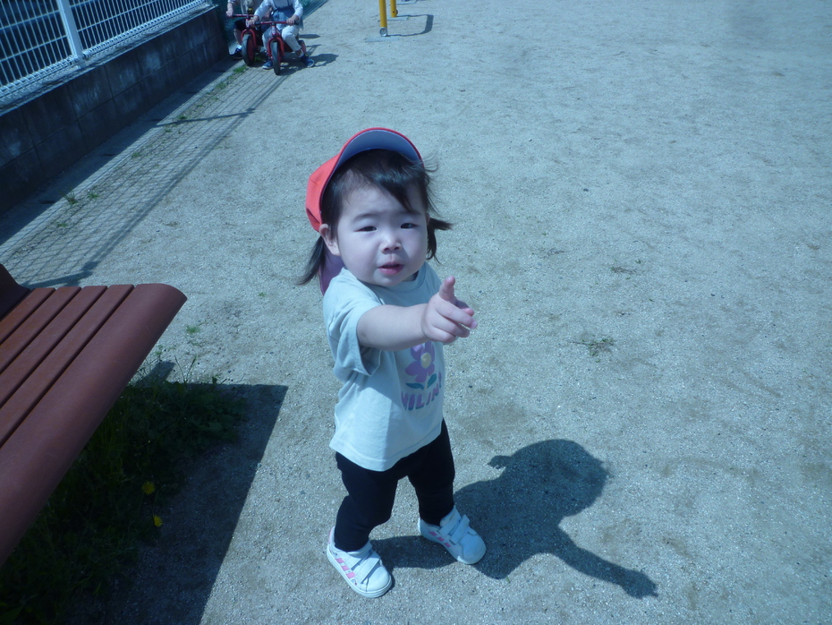 「ハトがいる!!」と、指差しで知らせてくれています! | ||