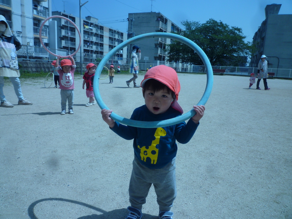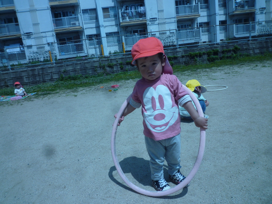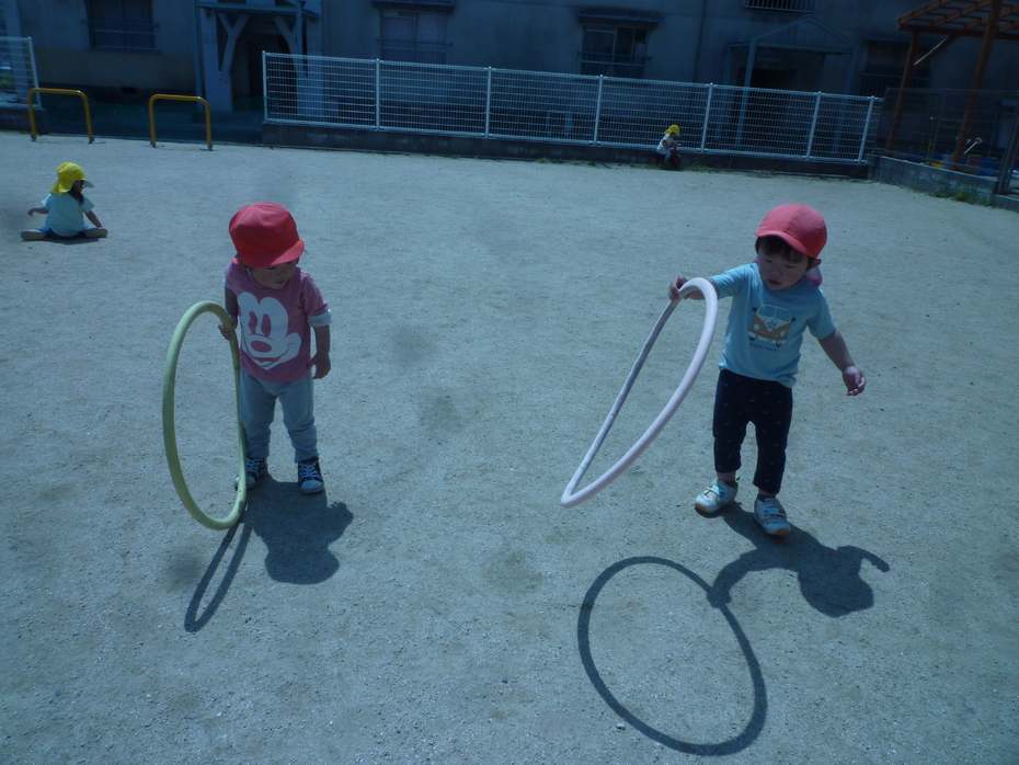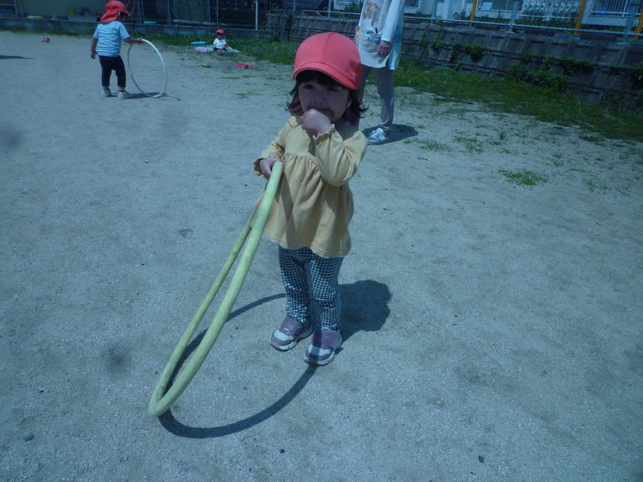 フープで遊んでいます♪ | ||