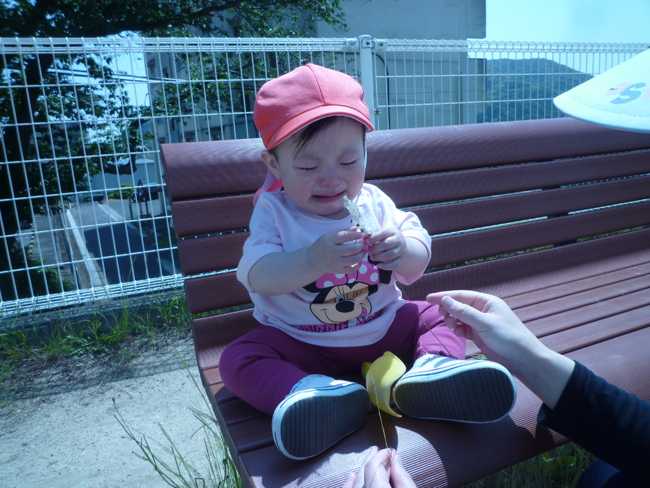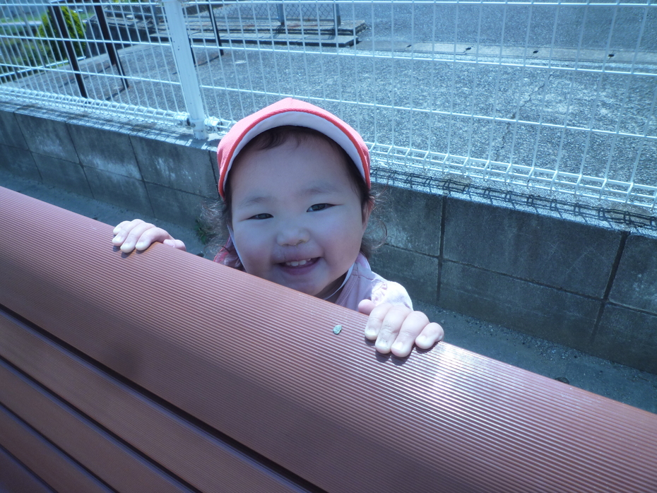 ベンチの後ろに隠れて…「ばあ!!」 | ||