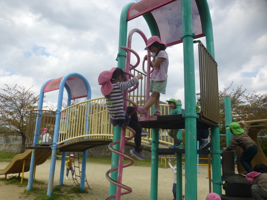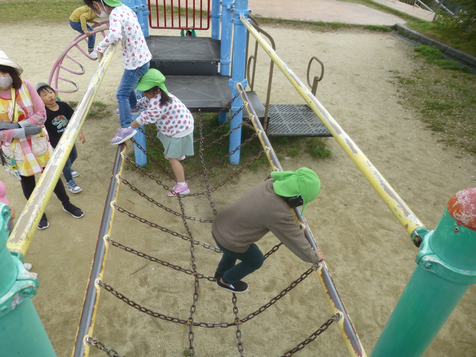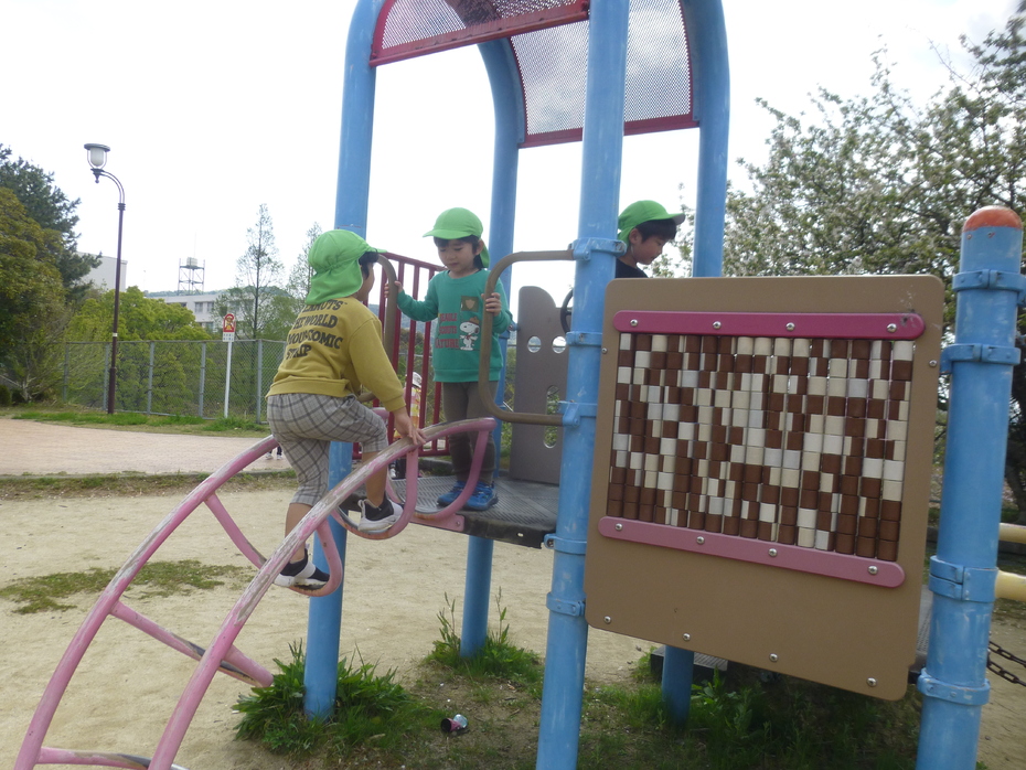公園では元気に遊具で遊びました。