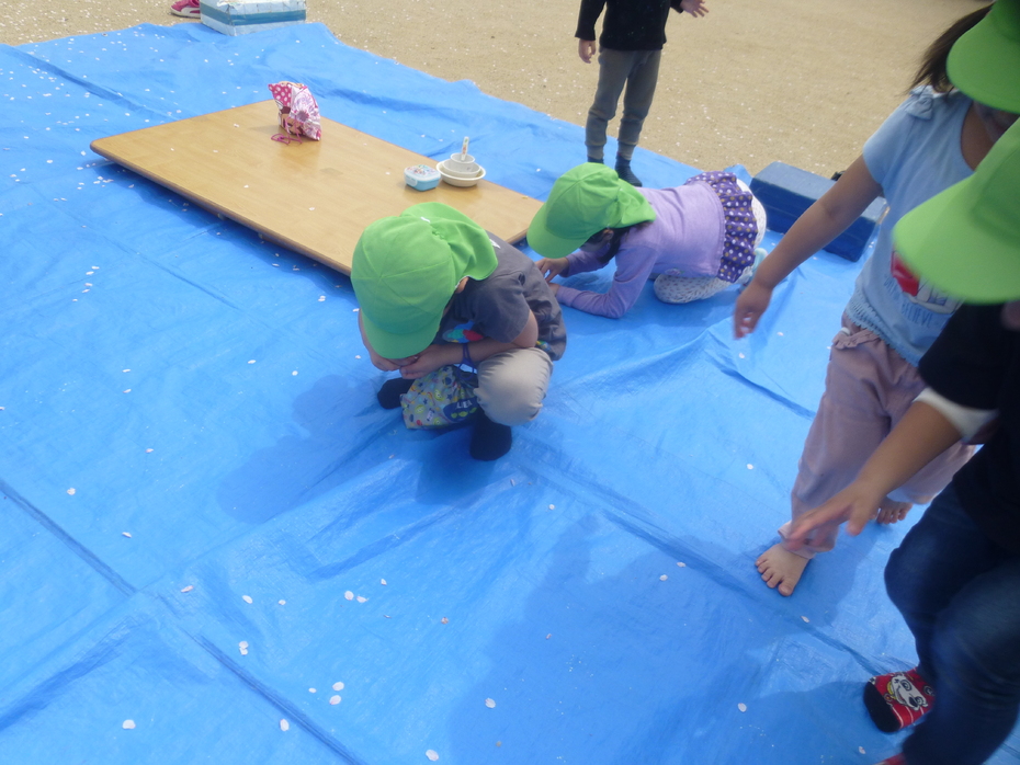 花びらがひらひら舞い、大喜び♪