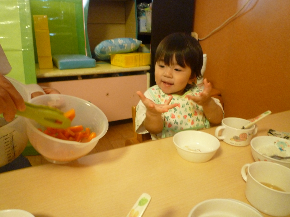 たくさん歩いてお腹がすいたね。 「おかわりちょだい」とアピールしていました | ||