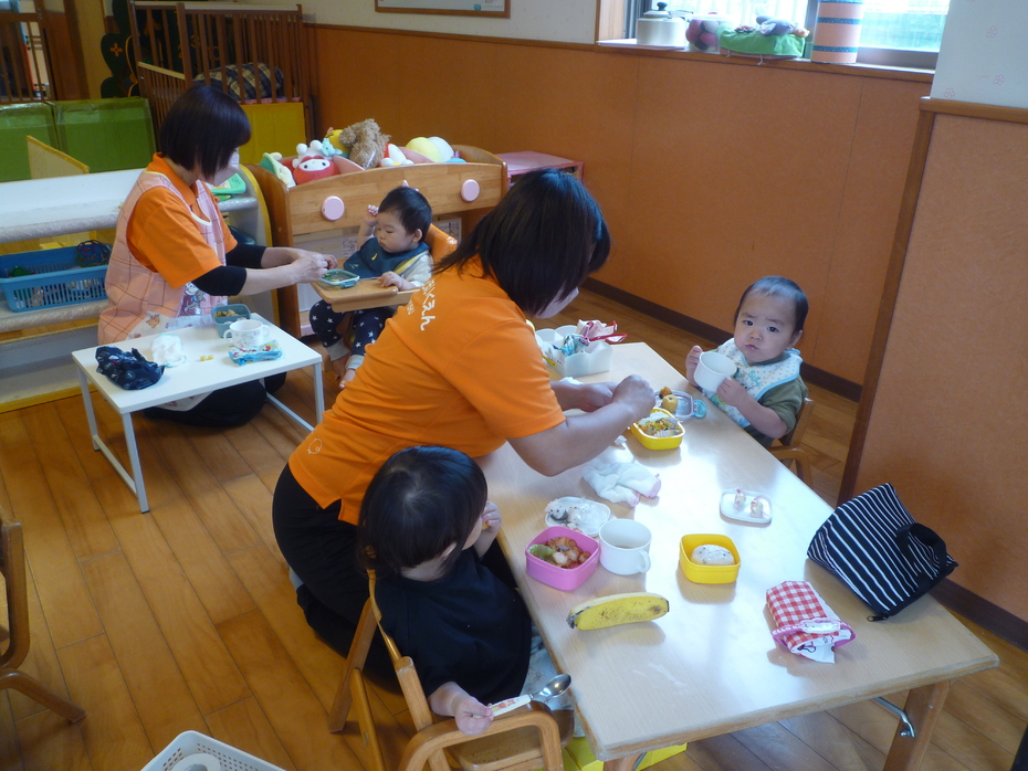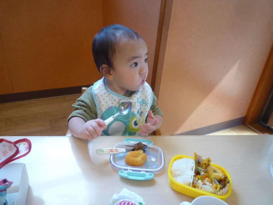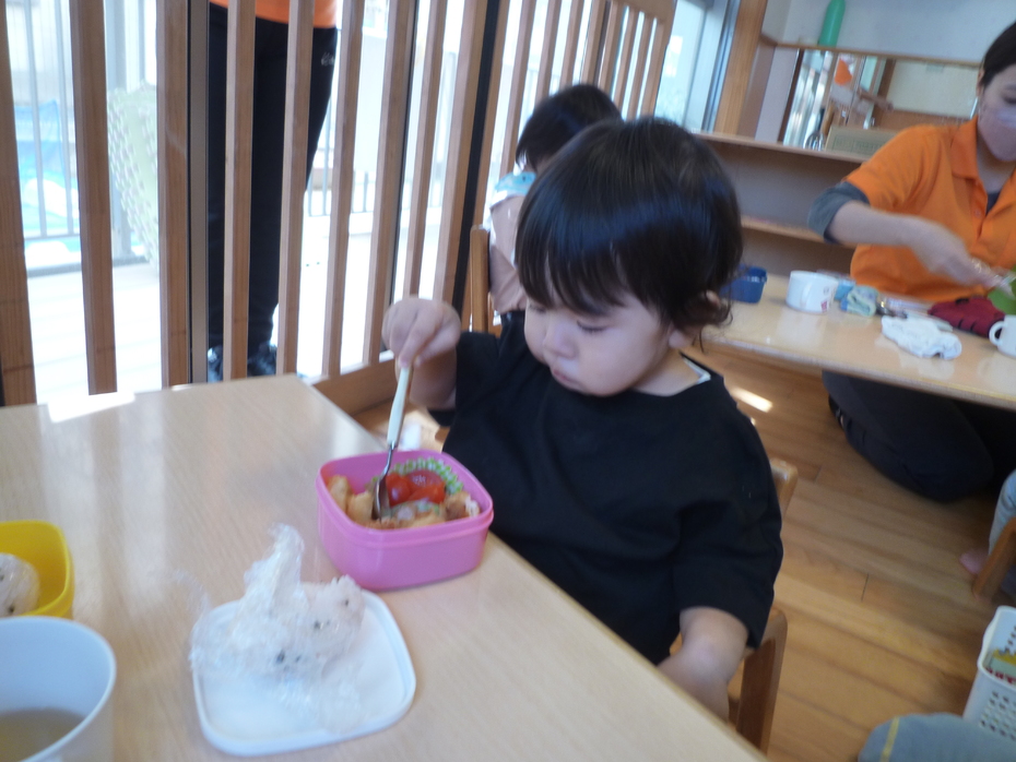 | 未満児クラスは近くの沼新町中央公園にお出かけして元気に遊んだ後、保育園に戻ってお弁当を食べました!お忙しい中のお弁当作りありがとうございました。子ども達、とっても嬉しそうでしたよ♪ | ||