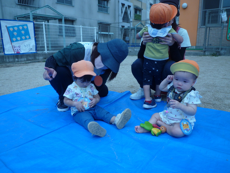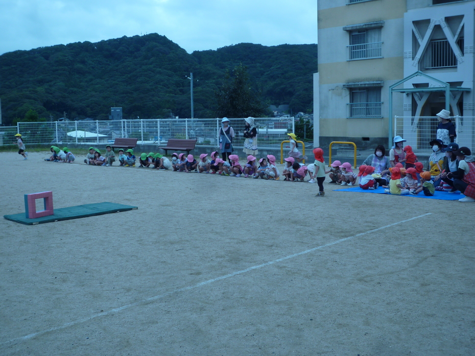 | ひよこぐみ・りすぐみ・うさぎぐみのお友達で運動会ごっこに参加しました。ぱんだぐみ・きりんぐみ・ぞうぐみのお兄さん・お姉さんたちも応援やお手伝いをしてくれました。 | ||