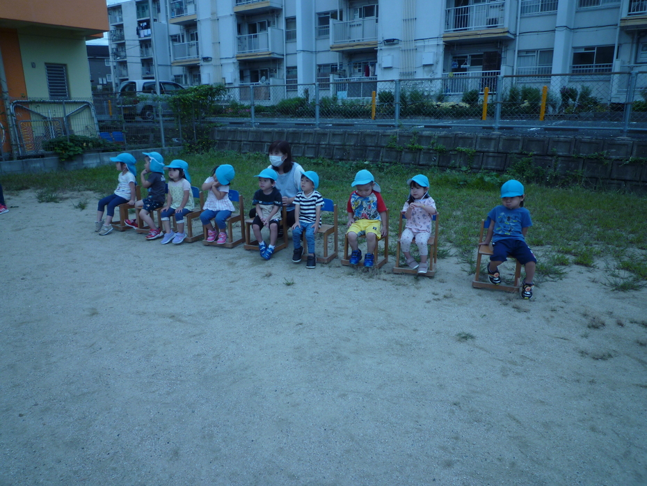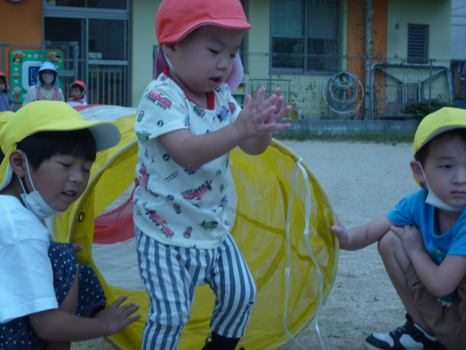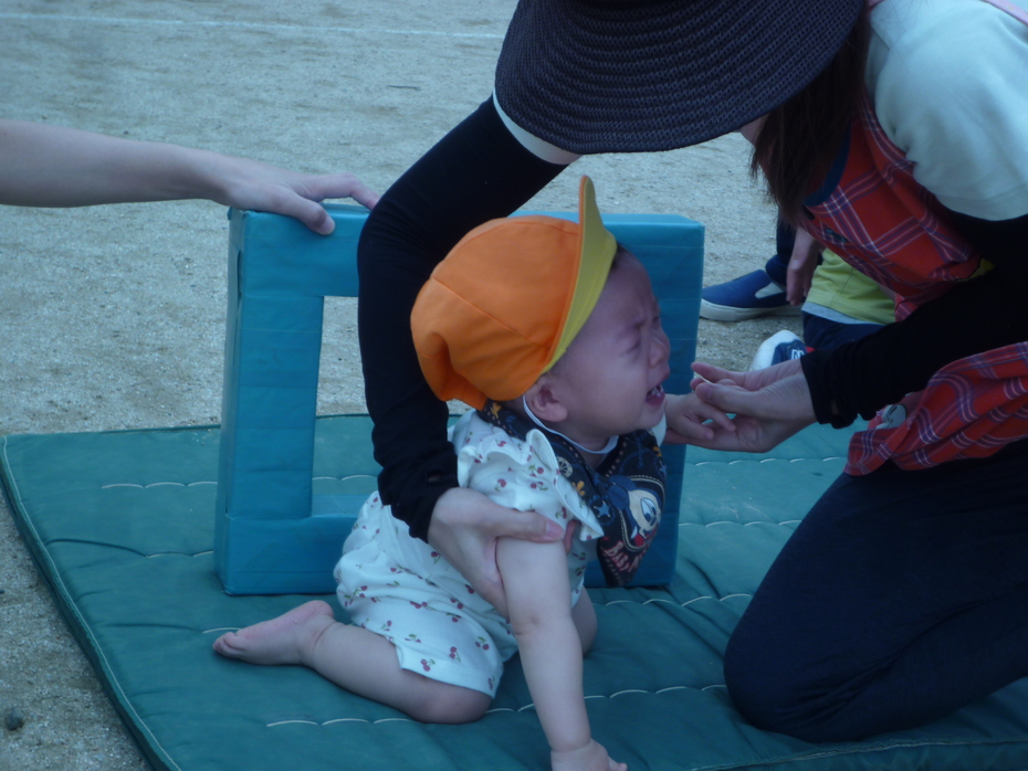 まず最初はひよこぐみです。泣いてしまう子どももいましたが、がんばりました。 | ||