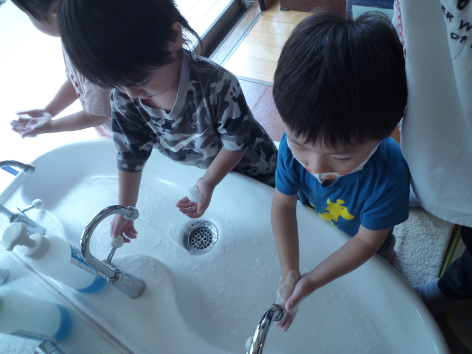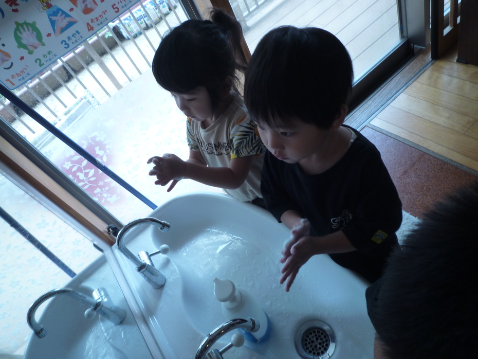 野菜に触れる前にしっかり手を洗いました。 | ||