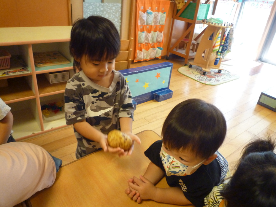 ジャガイモを大事に触っています! | ||