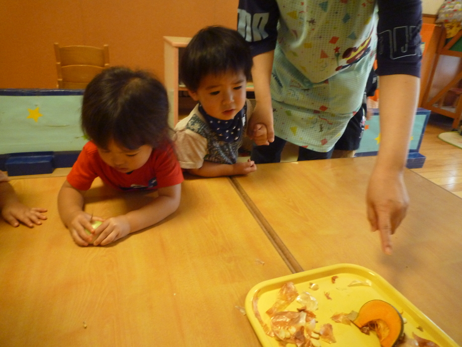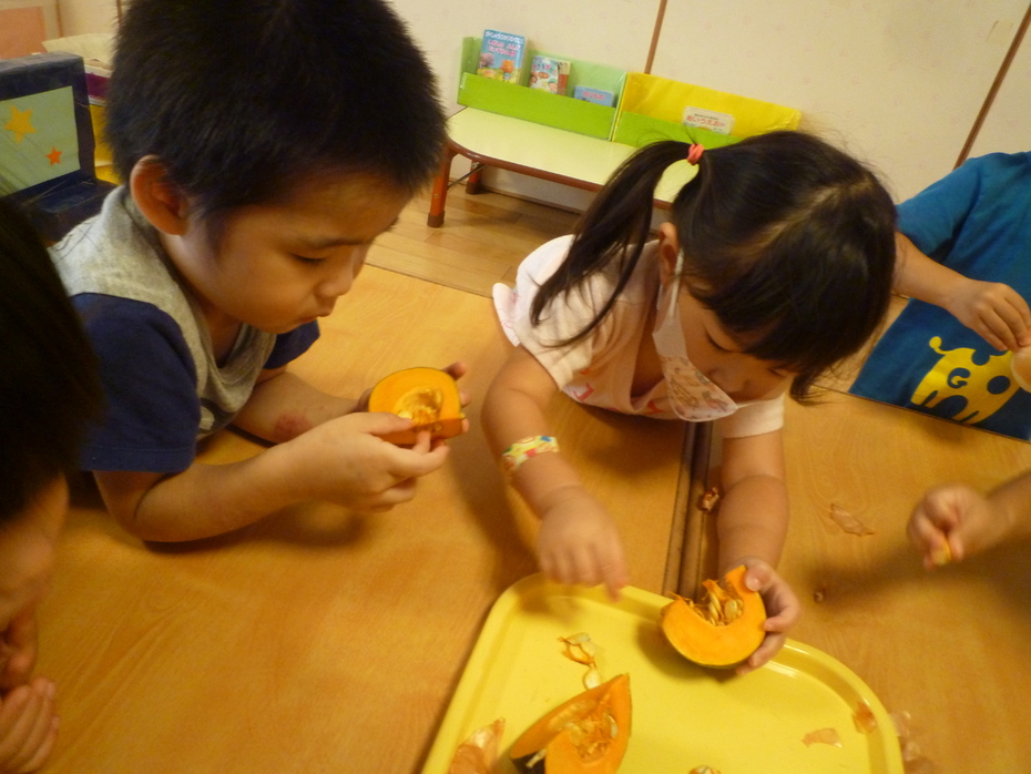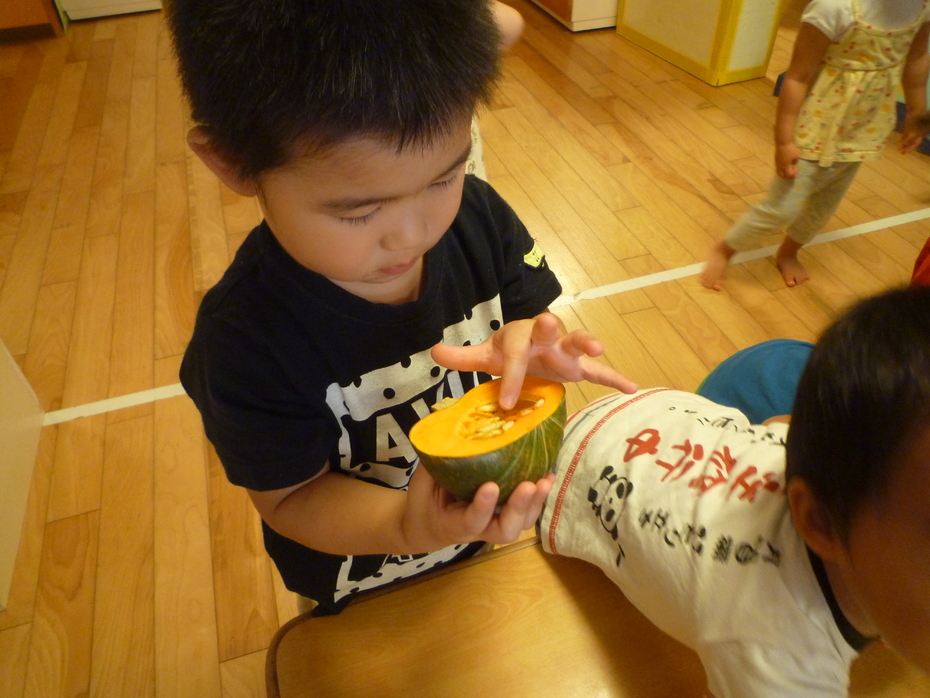 カボチャの種を上手に取っています。 | ||
