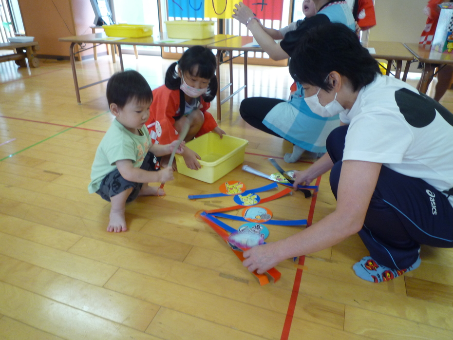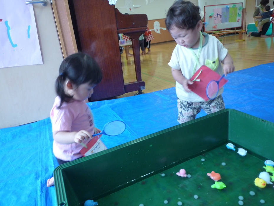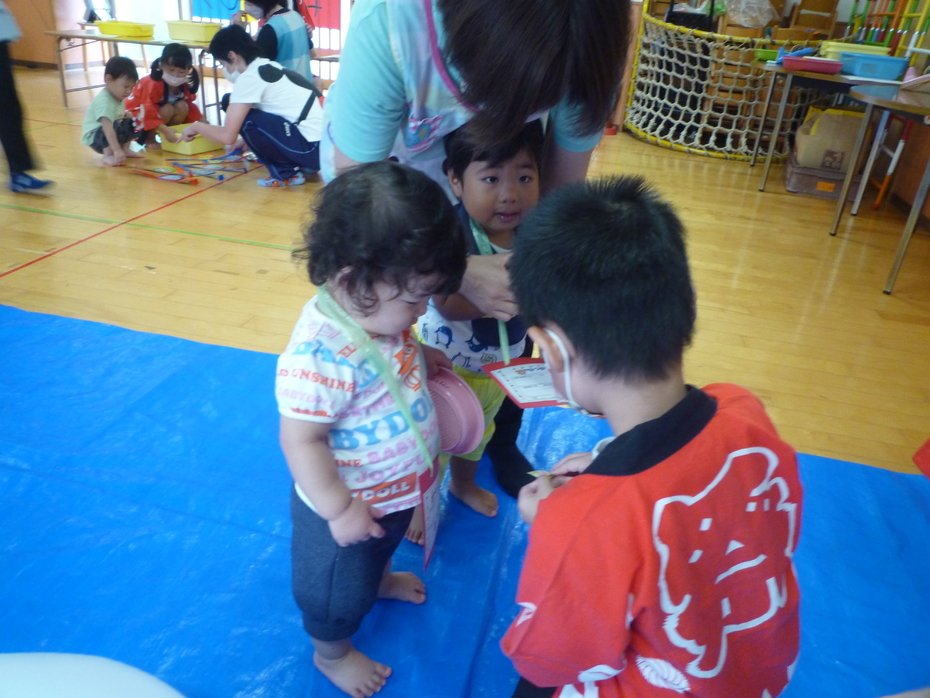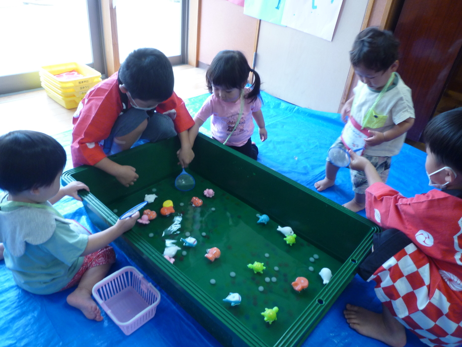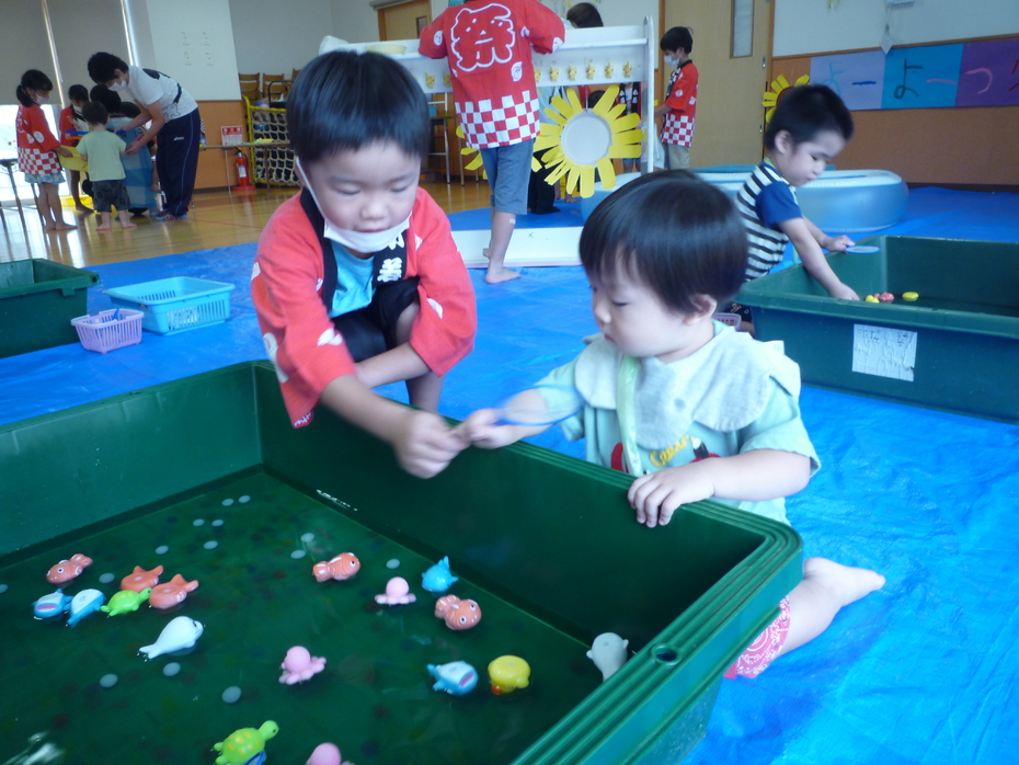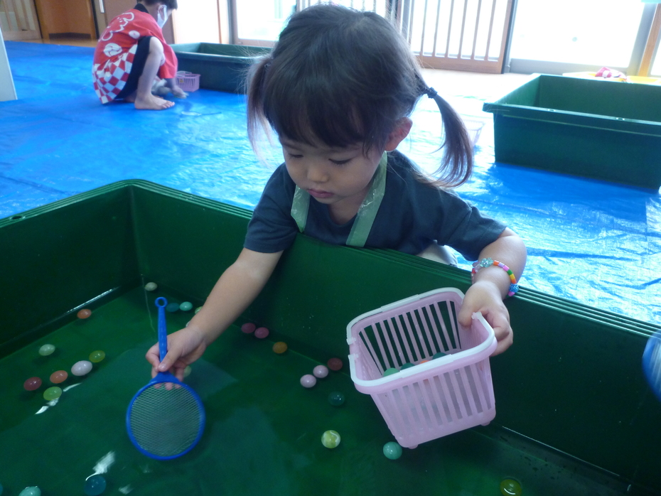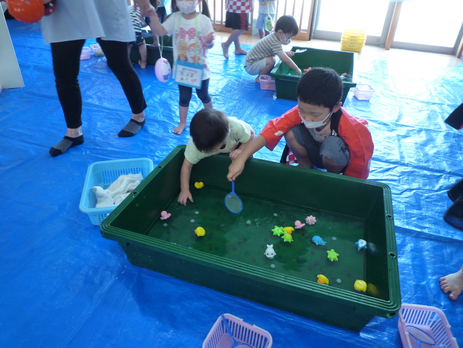 3階ホールで行われたサマーフェスティバルに参加した様子です。少しですが掲載します。ヨーヨーすくいにアニマルすくい、ボール当て、くじのお店を楽しみました。