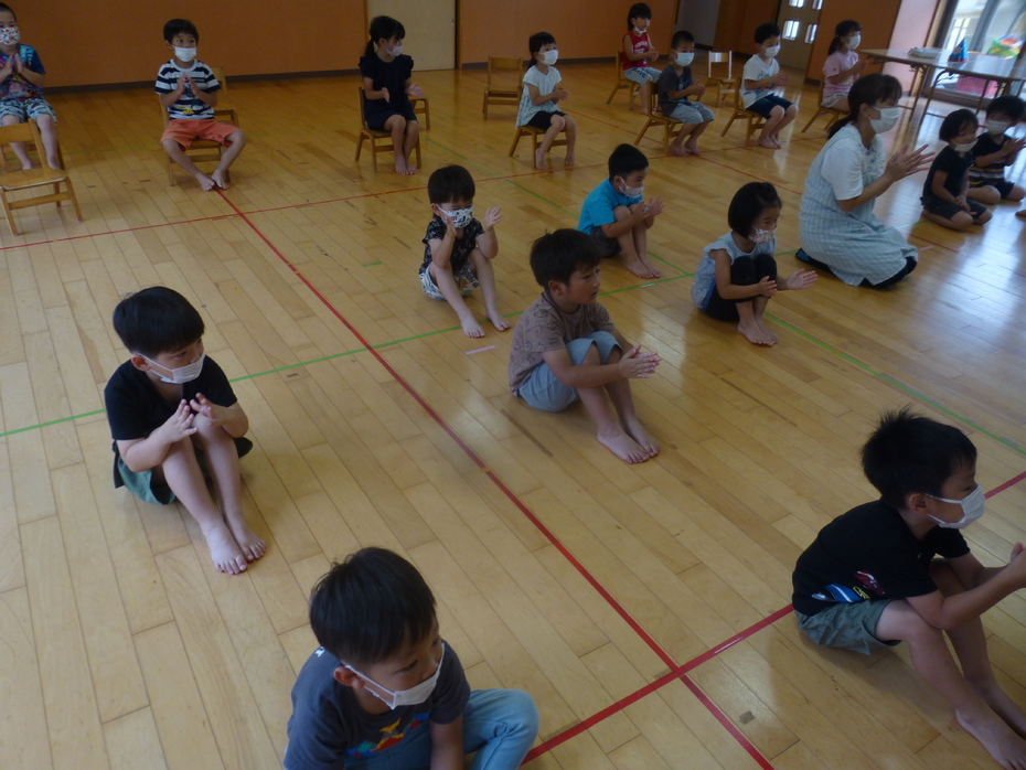 大型絵本「おばけのてんぷら」を静かに見ました。 | ||