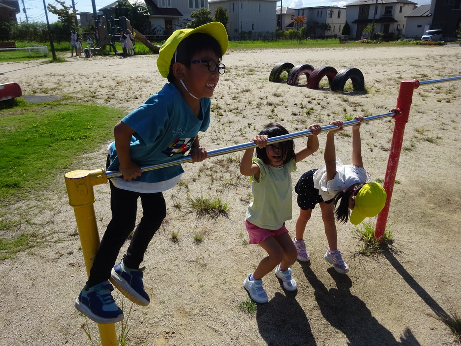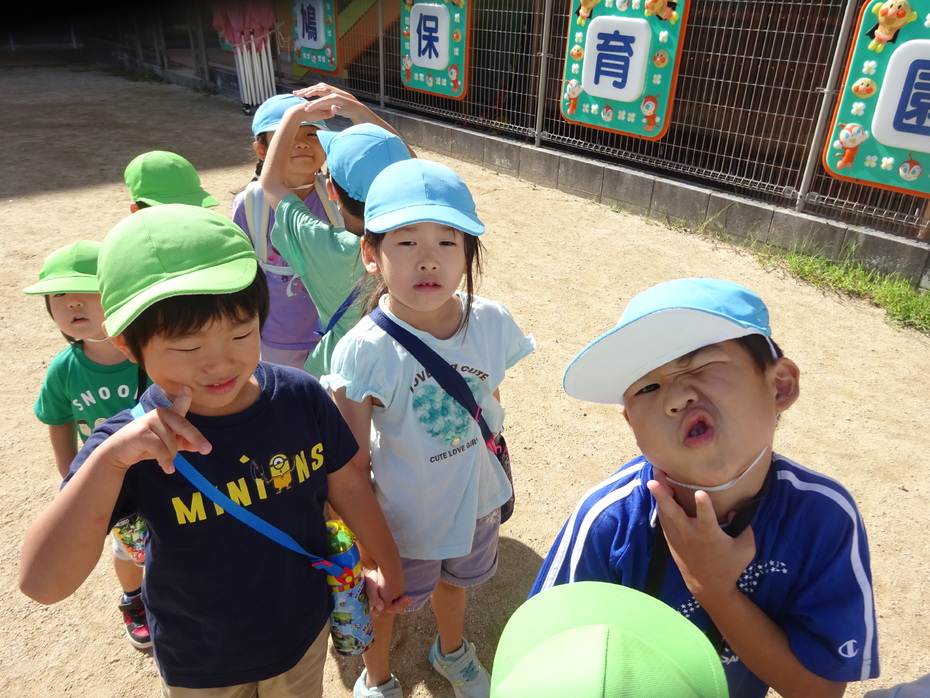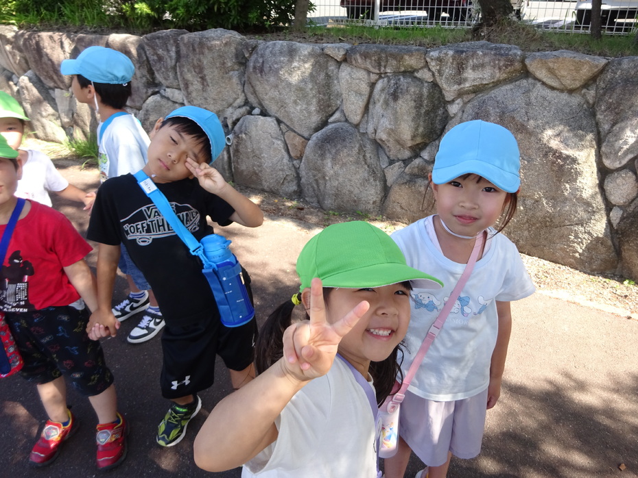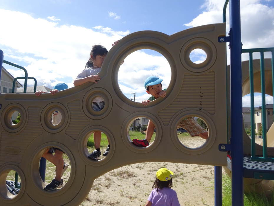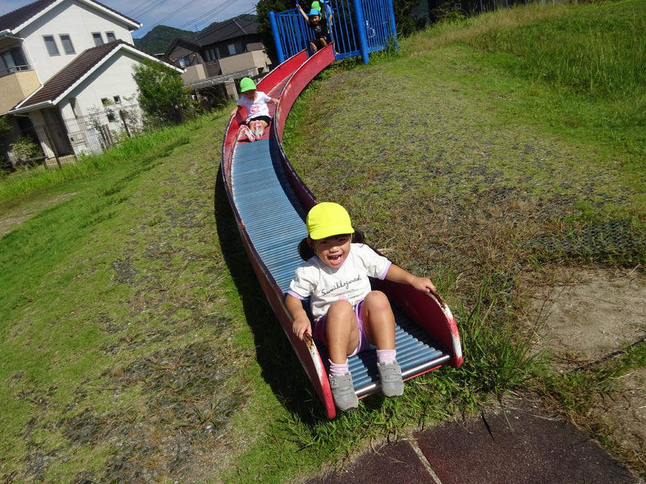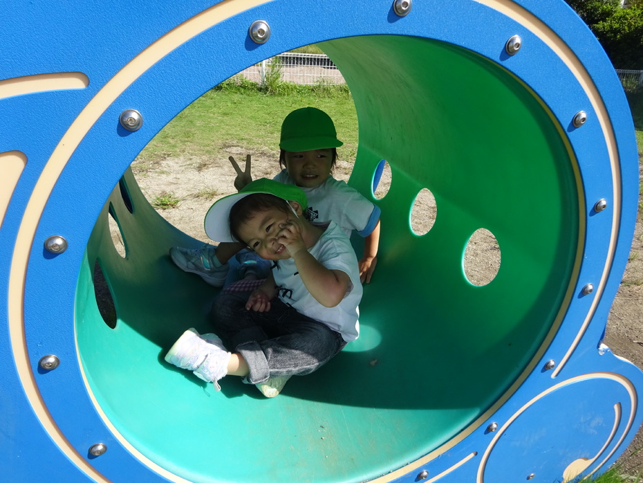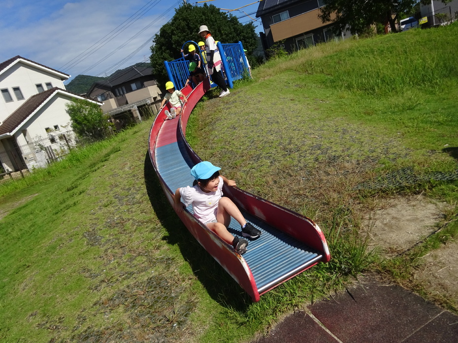 今日はとってもいい天気でしたね。以上児合同で園外保育に出掛けましたよ!いつもの散歩コースよりも遠くの“にれのきっこ広場”まで行ってきました!いろいろな遊具に目を輝かせ、たくさん遊んだ子ども達です。自分の水筒で水分補給しながらたくさん歩きましたよ! | ||