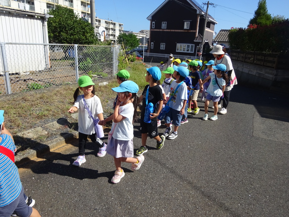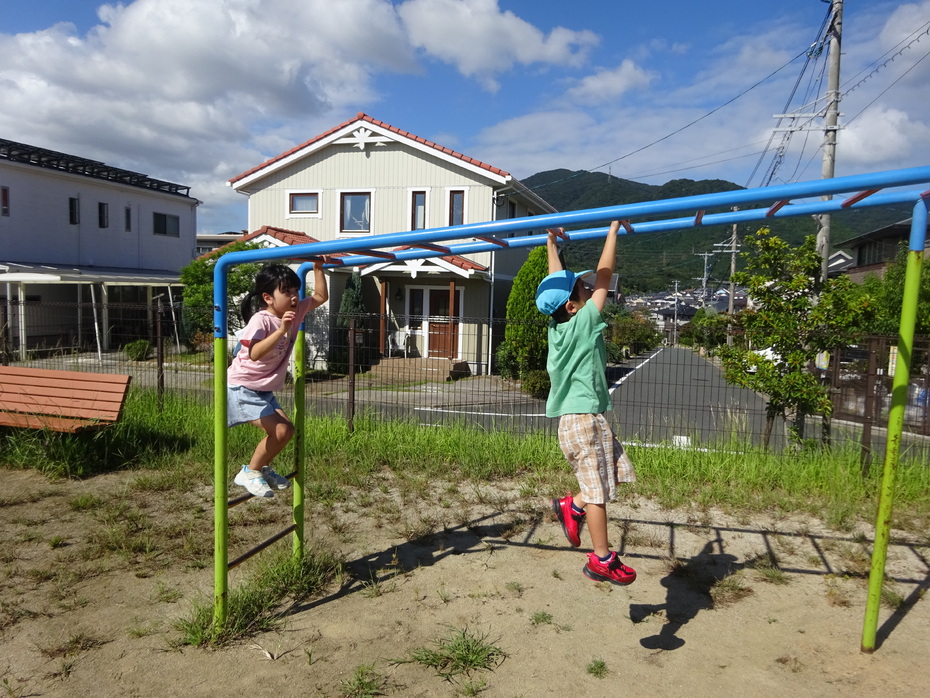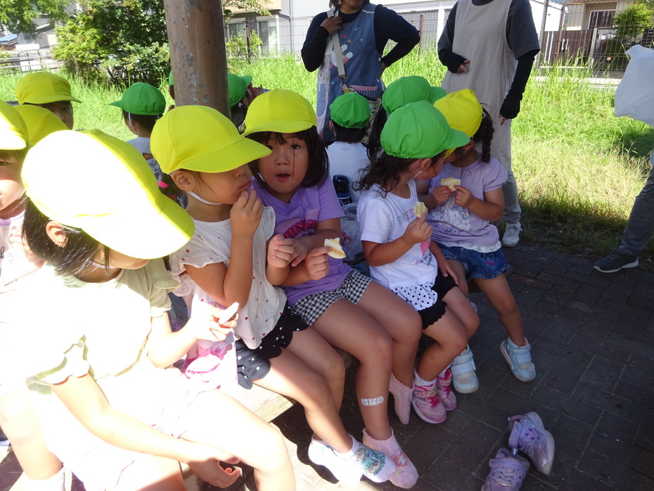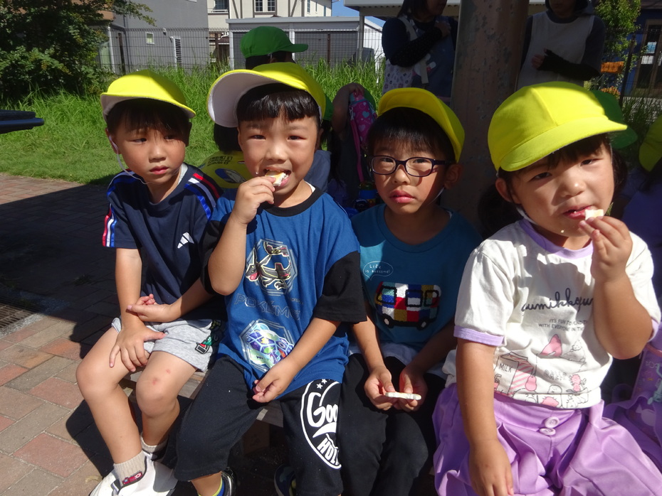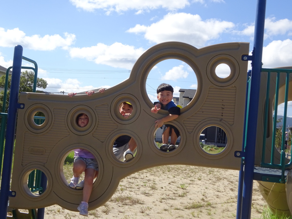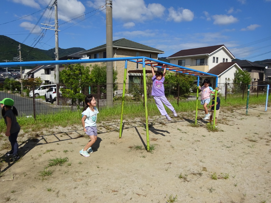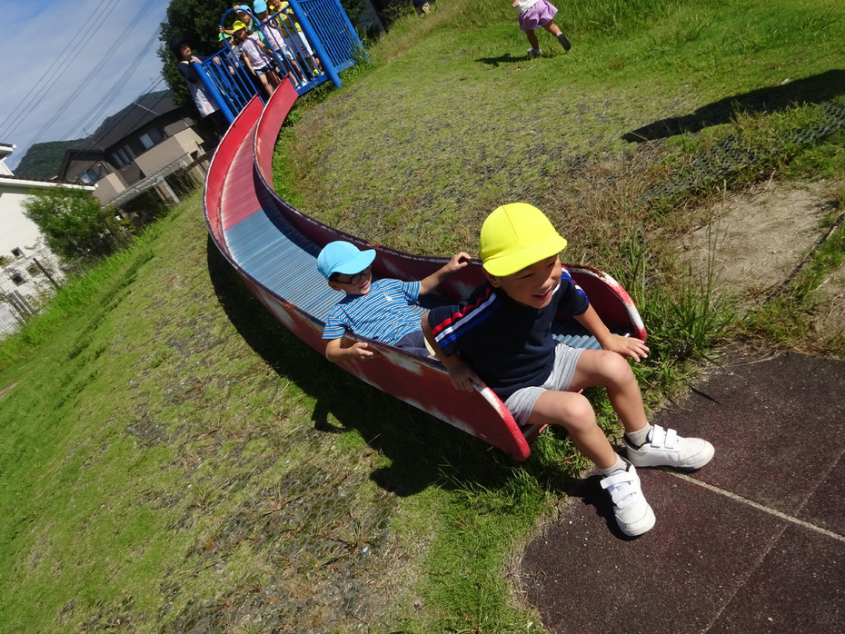 今日はとってもいい天気でしたね。以上児合同で園外保育に出掛けましたよ!いつもの散歩コースよりも遠くの“にれのきっこ広場”まで行ってきました!いろいろな遊具に目を輝かせ、たくさん遊んだ子ども達です。自分の水筒で水分補給しながらたくさん歩きましたよ! | ||