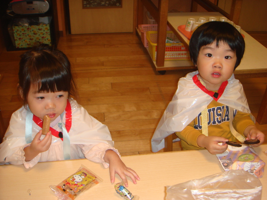 お菓子をもらってもぐもぐ・・・・おいしかったね☆ | ||