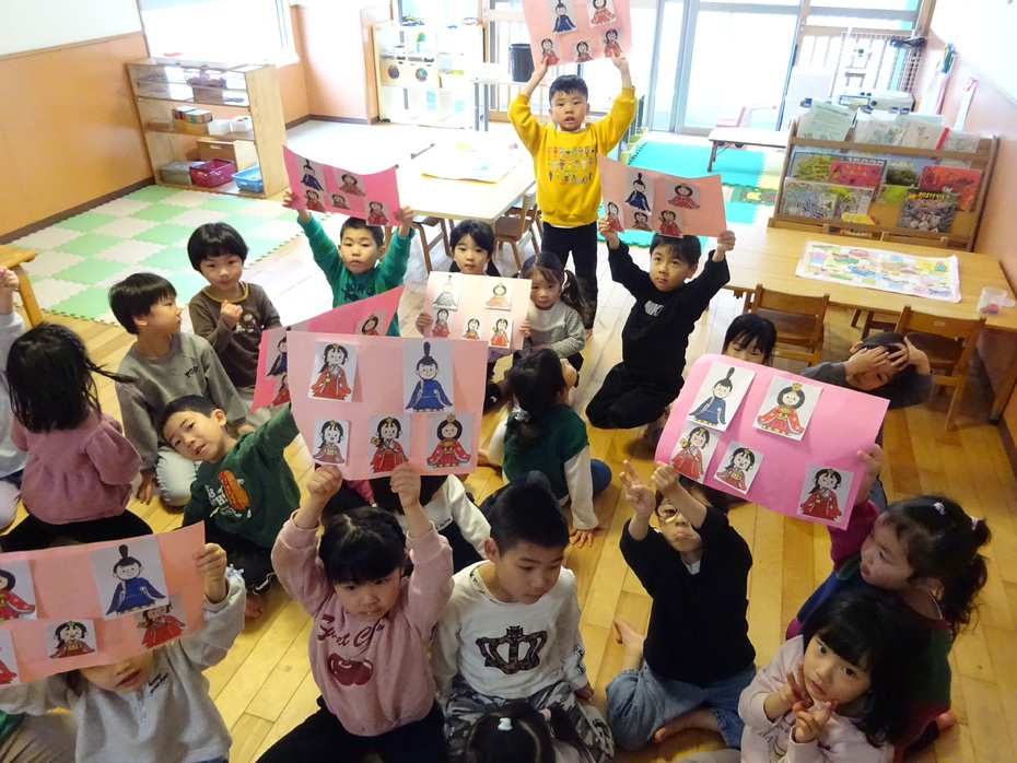 お友達と力を合わせて〝おひなさま〟完成! | ||