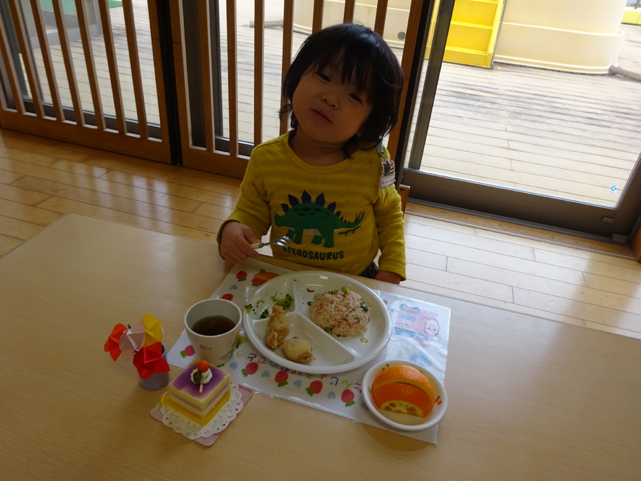 かわいいお雛様を飾って、それを見ながら食事をしたよ! | ||