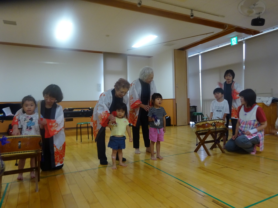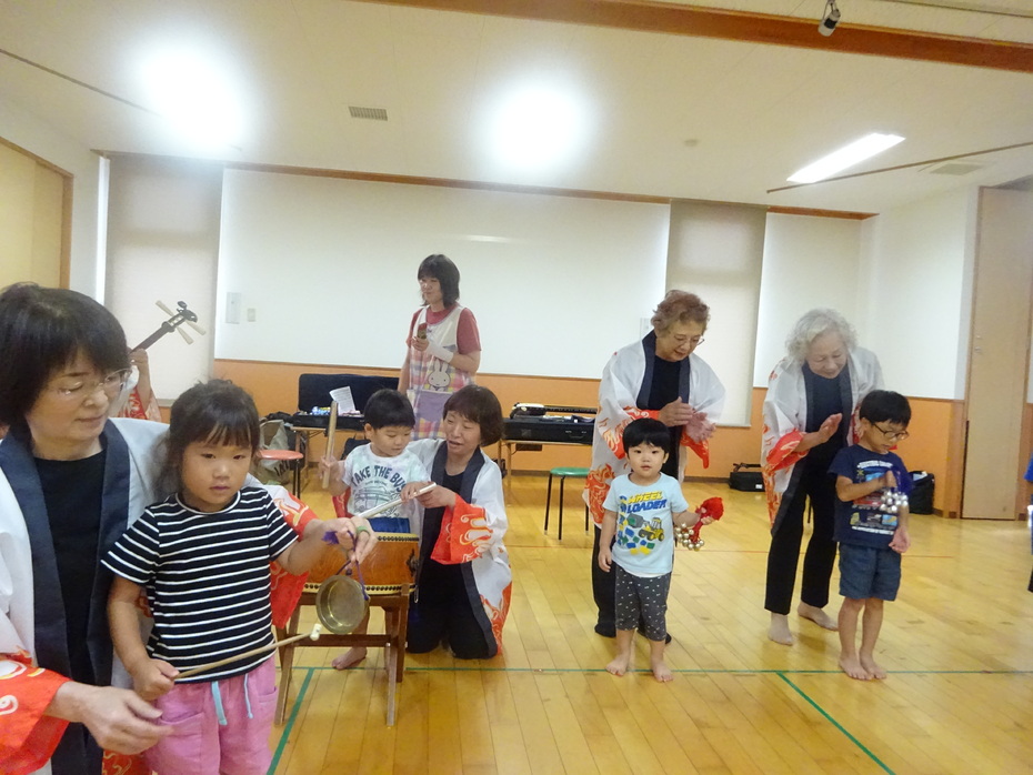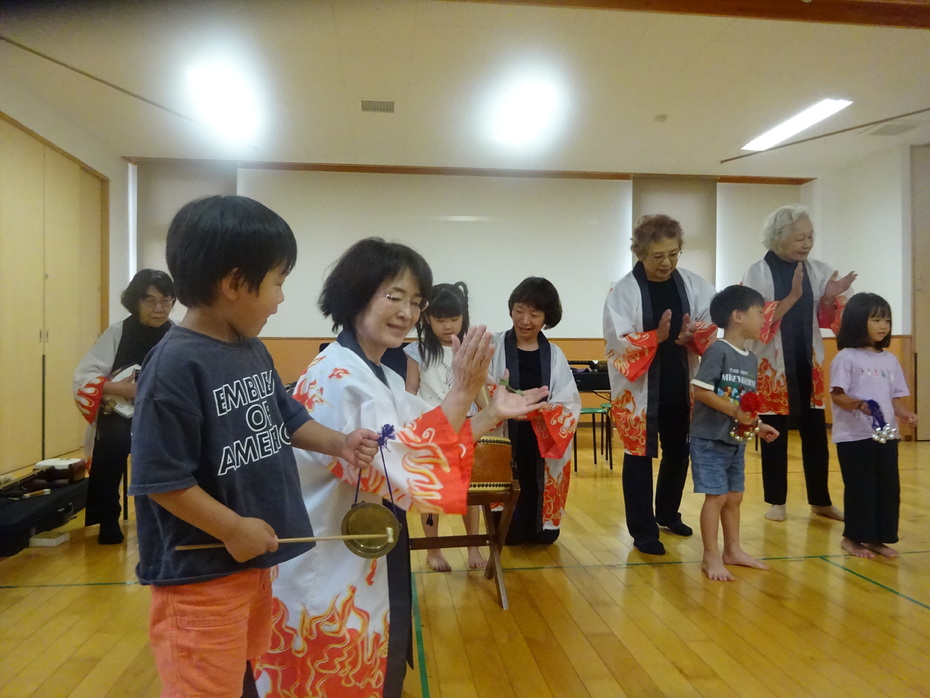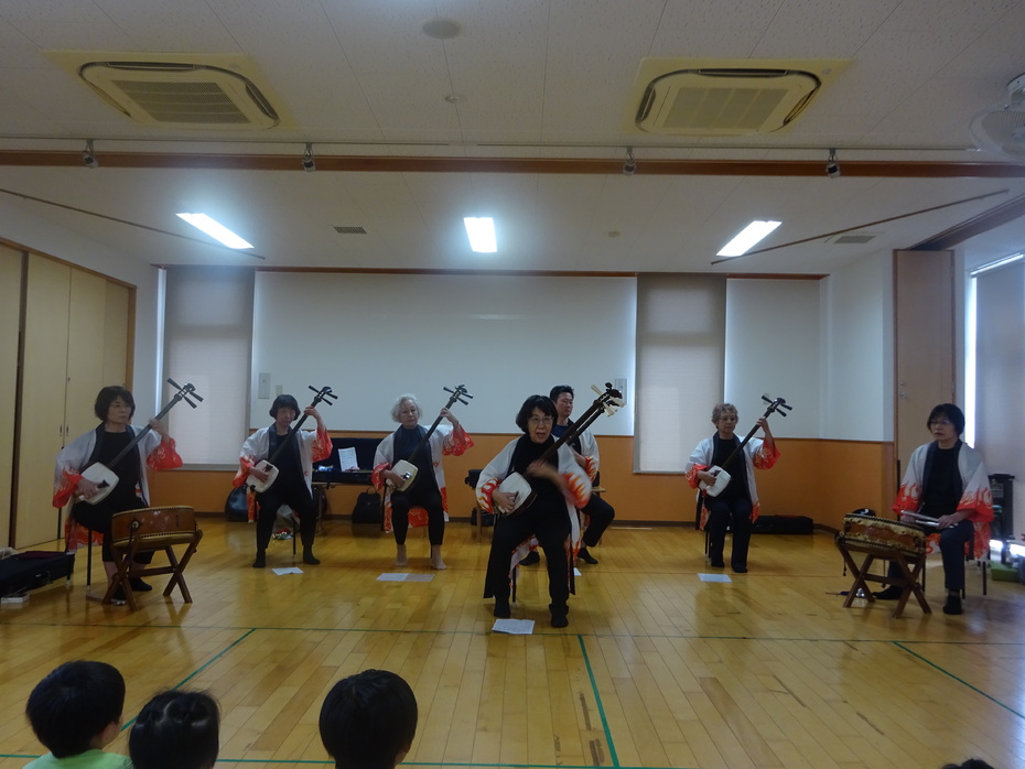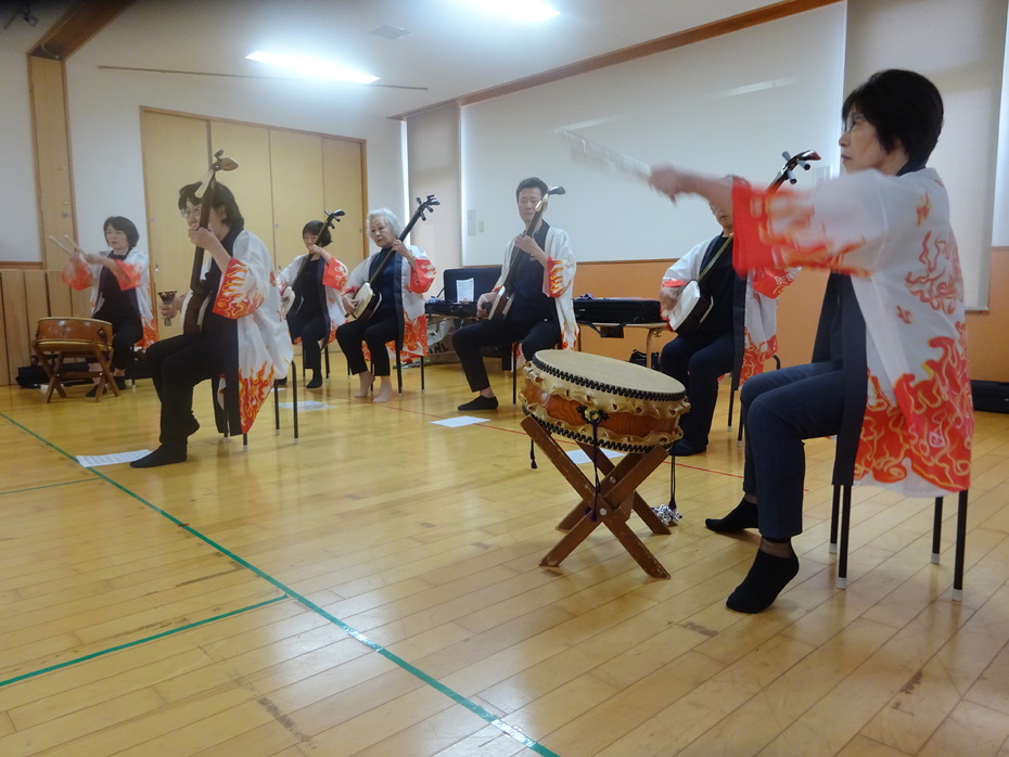 津軽三味線愛好会の方々が来て、津軽三味線、和太鼓、鈴、鐘で