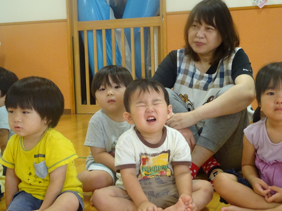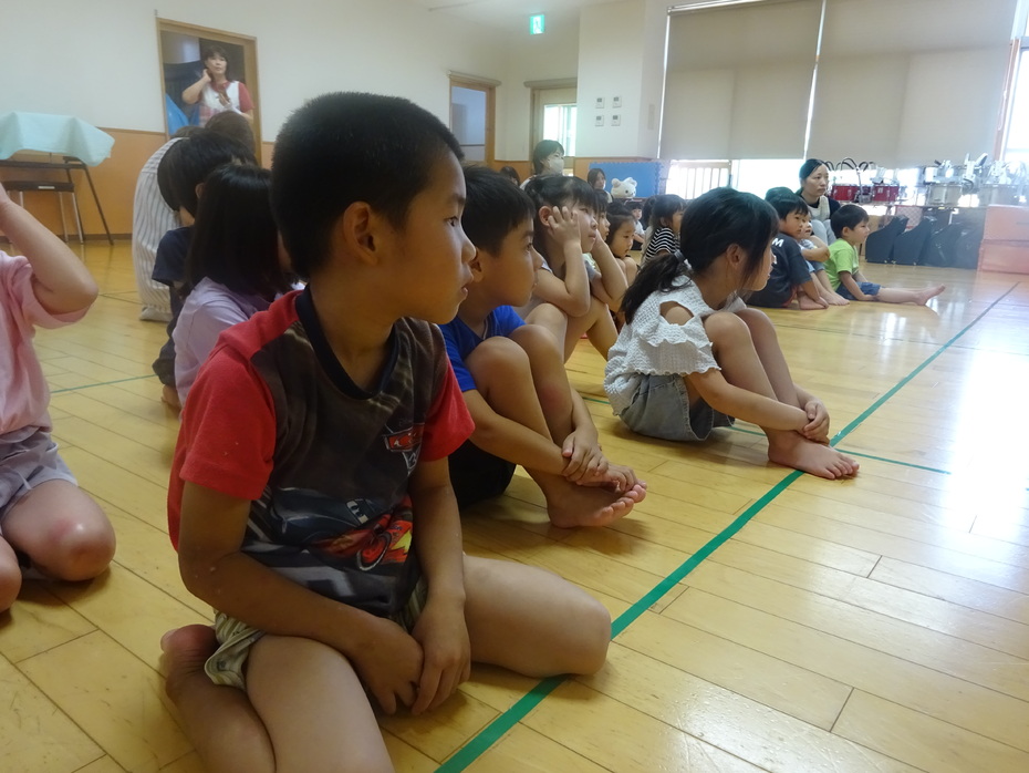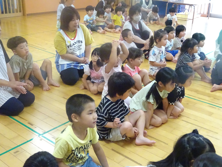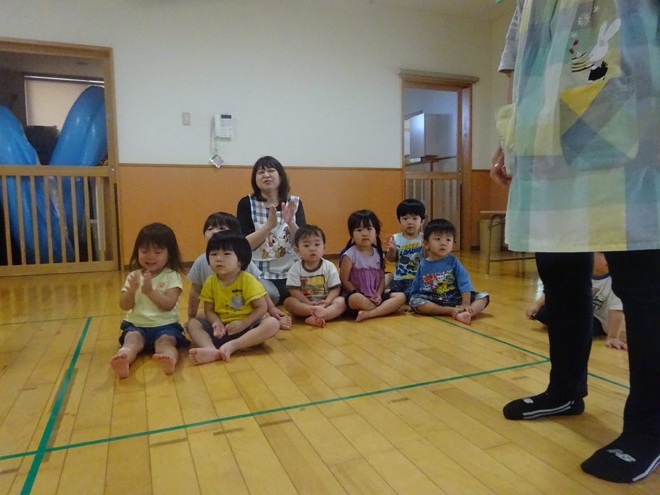うさぎ組、ぱんだ組、きりん組、ぞう組がホールで参加しました。