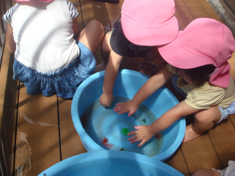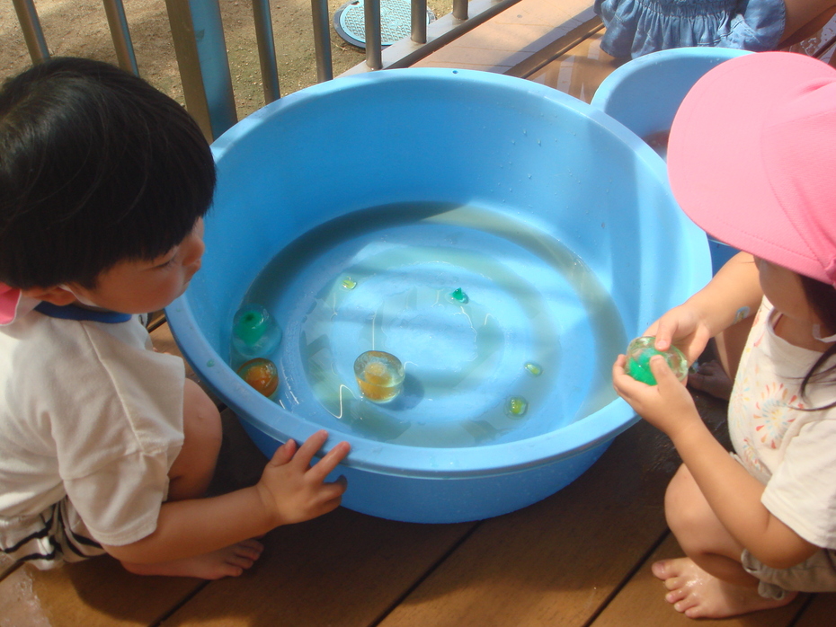 毎日暑い日が続きますね。少しでも涼しく過ごせるように、様々な遊びを楽しんでいます。