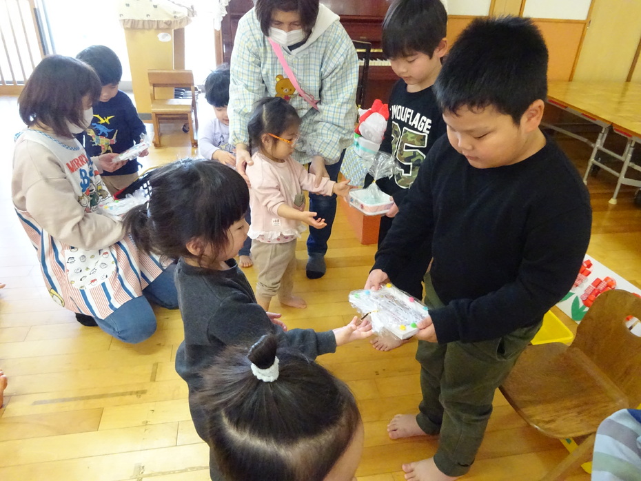 各クラスから5名のお友達に卒園のプレゼント渡しをしました。