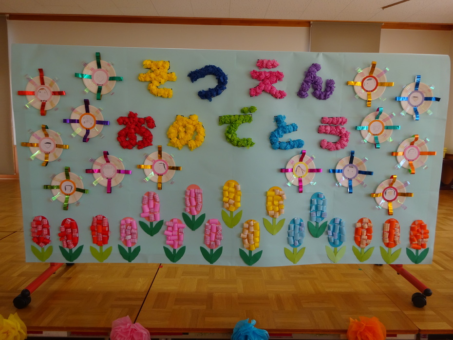 きりんぐみが作り、ホールを飾り付けてくれました。