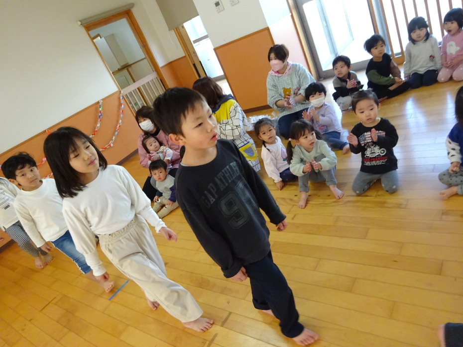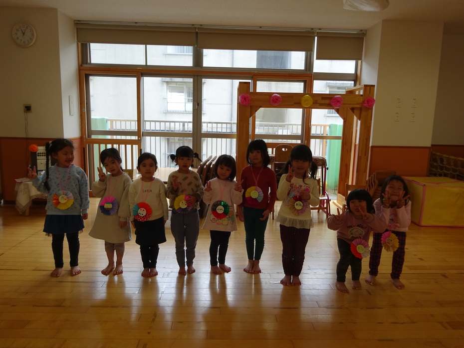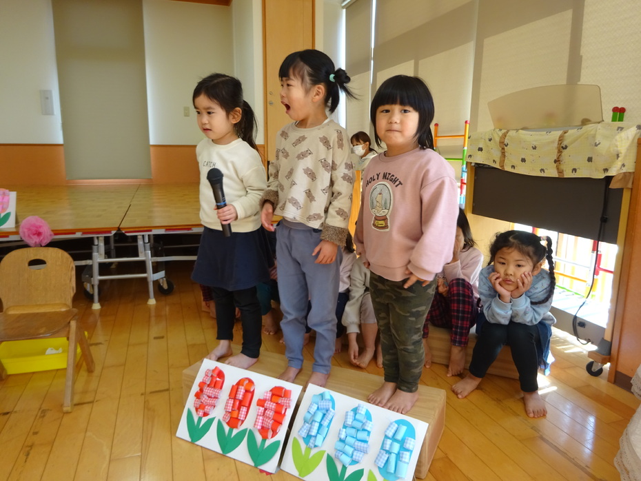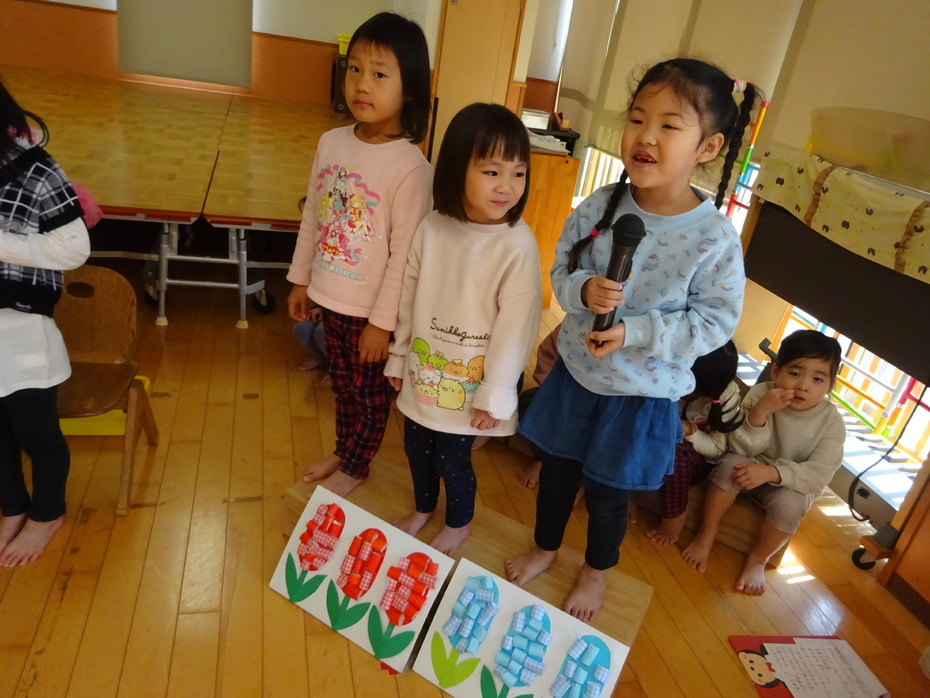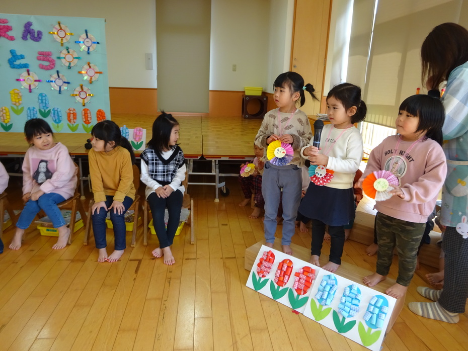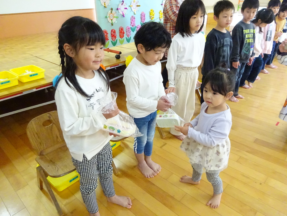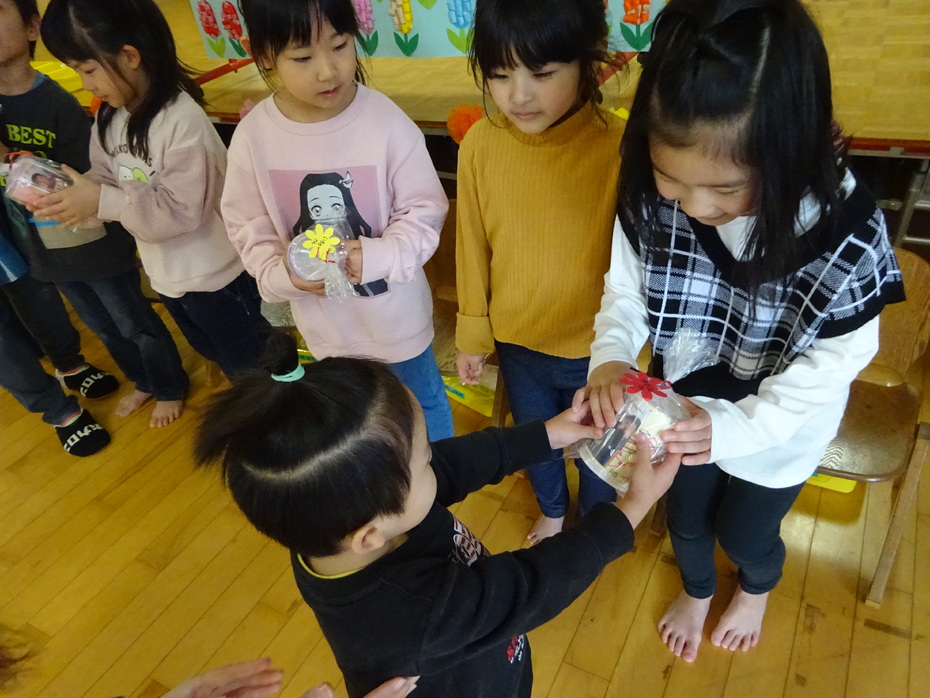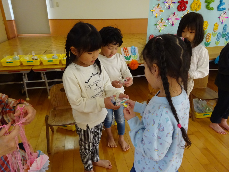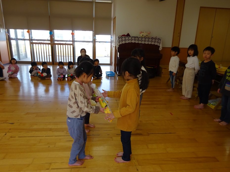 ひよこぐみ・りすぐみ・うさぎぐみからのプレゼント渡しです。