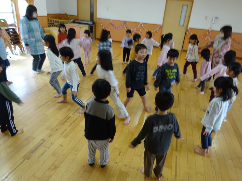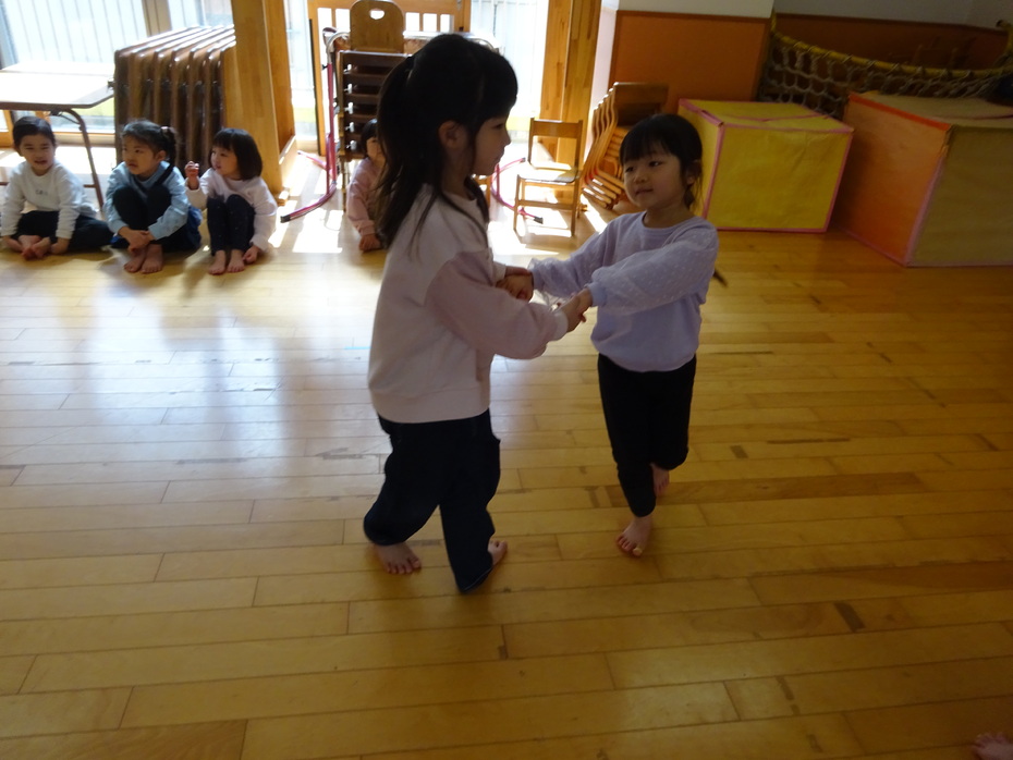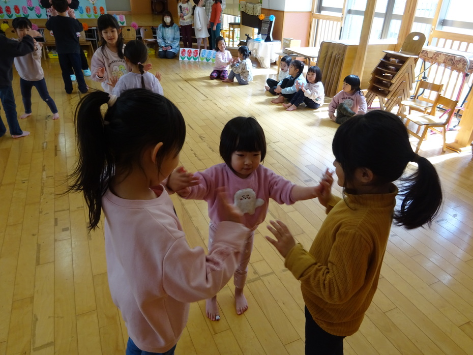 ぱんだぐみとぞうぐみで ふれあって踊りました。