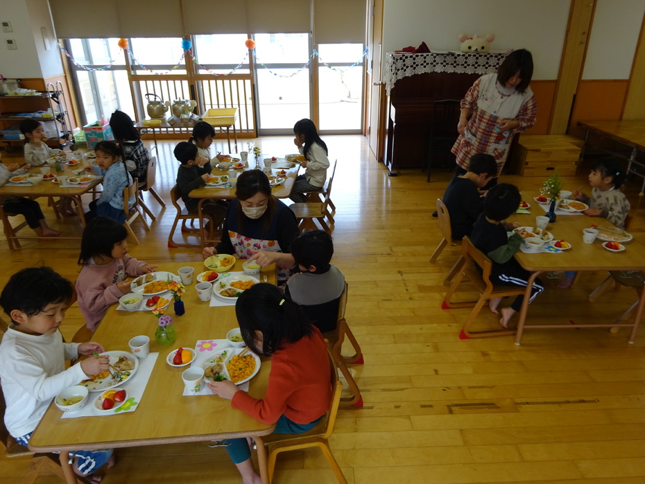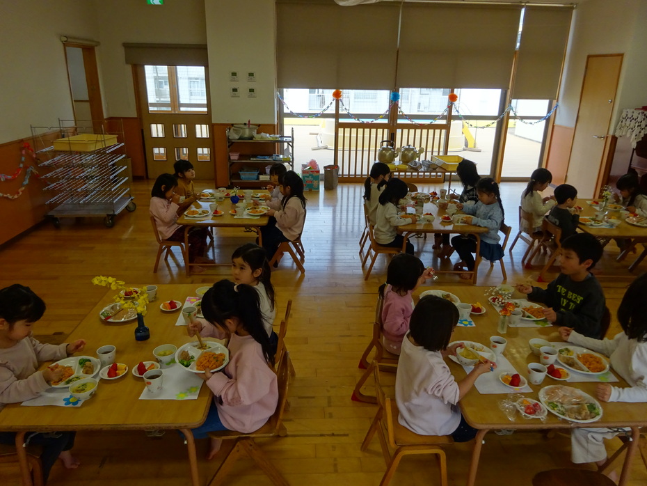 お別れパーティーの後は、会食をしました。メニューはぞうぐみが考えました。