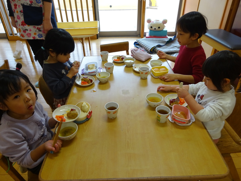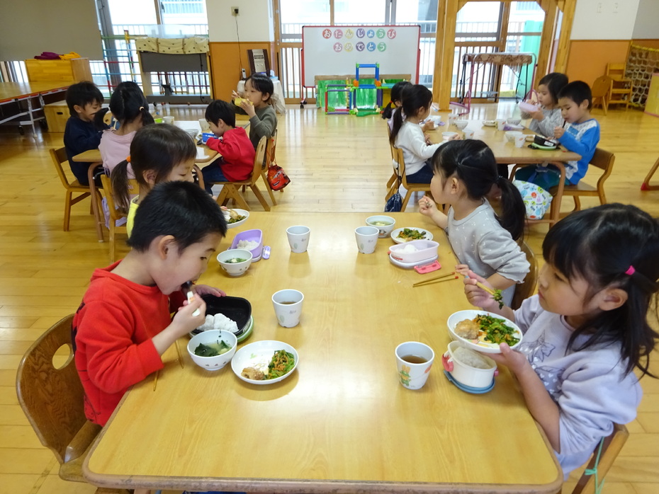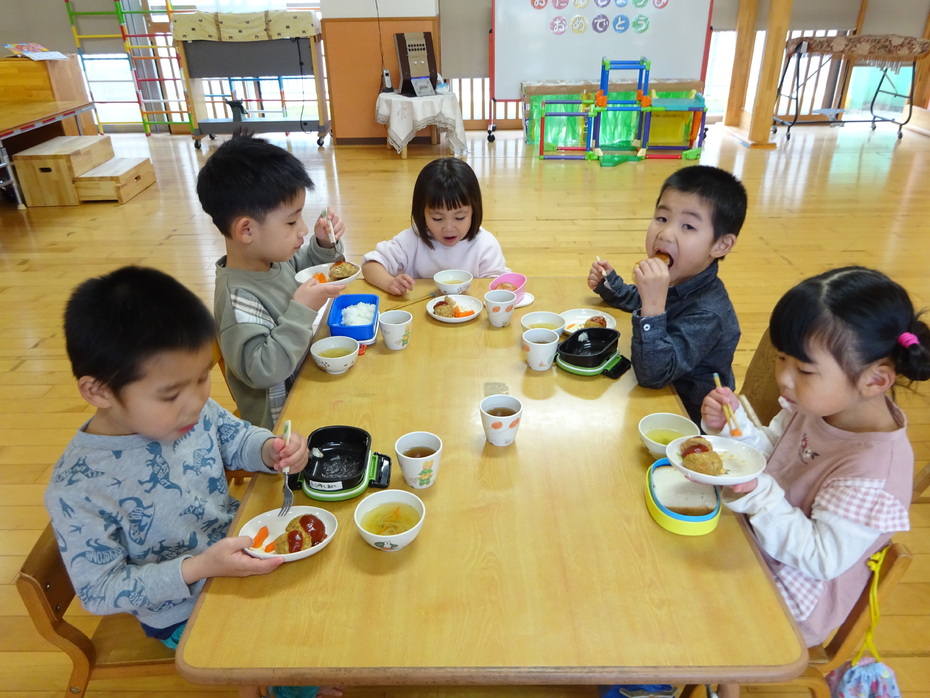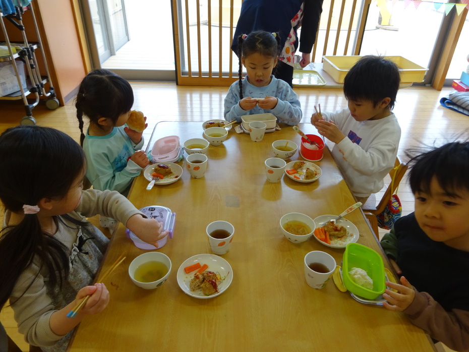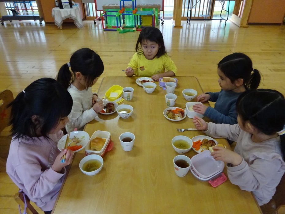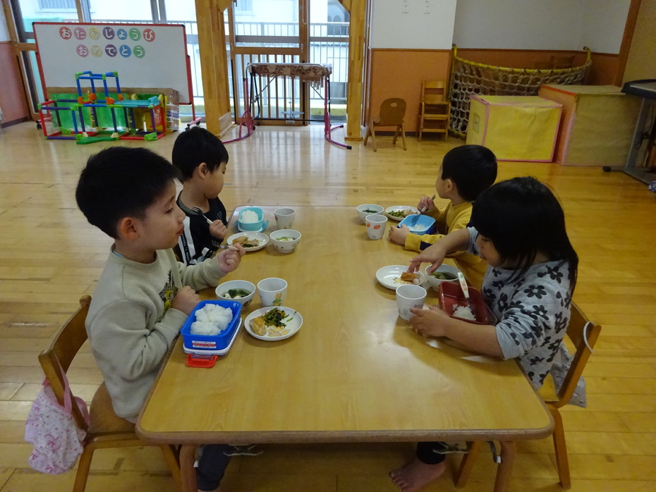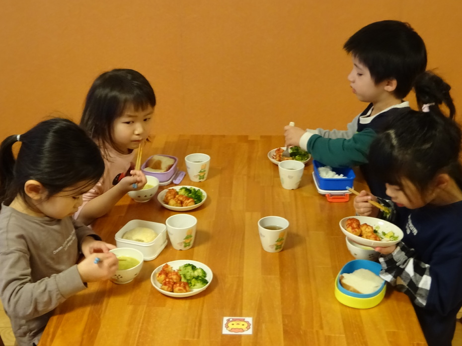 今週の月・火・木曜日は、ぱんだ組と3階ホールで食事をしました。