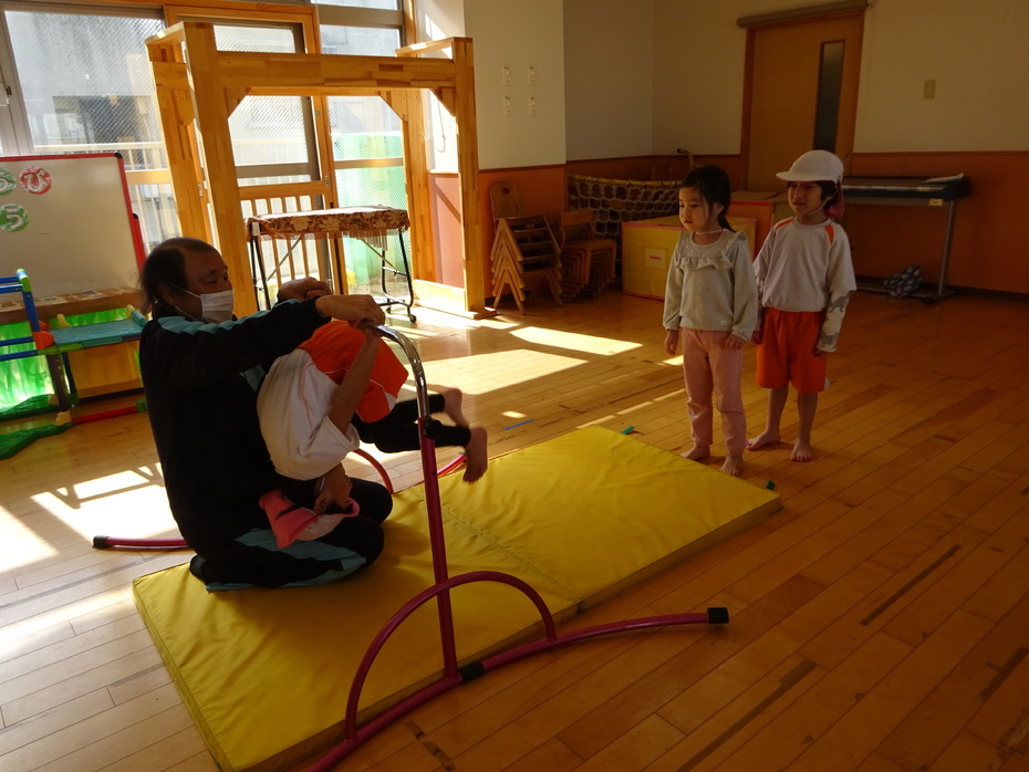 体操教室での準備体操や鉄棒の様子です。少しですが・・・