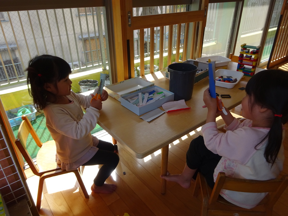 線に沿って切ってます。まだまだ難しいようです。
