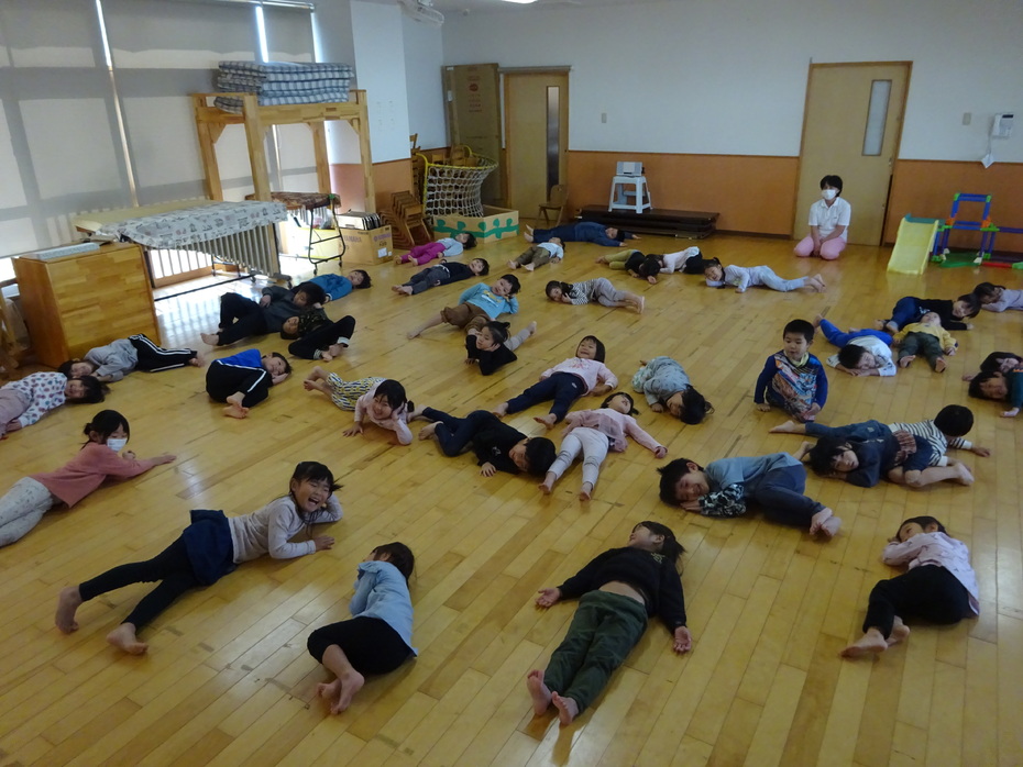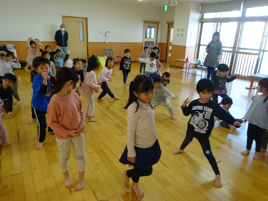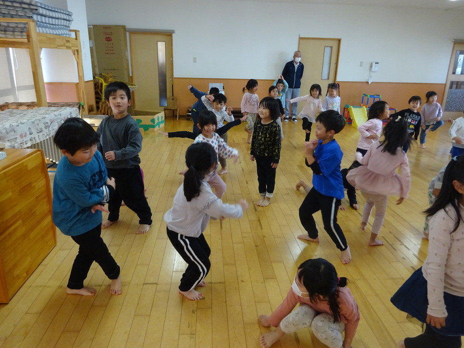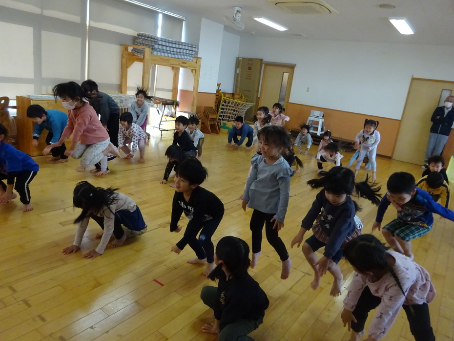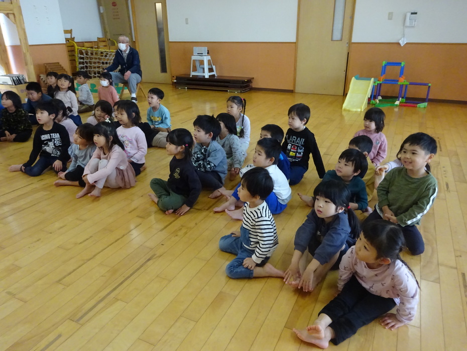 11月の誕生児は3人でした。『あいさつするっていい気持ち』のペープサートをみたり、絵カードを見て身体で表現をしたりする遊びをしました☆