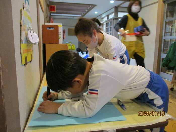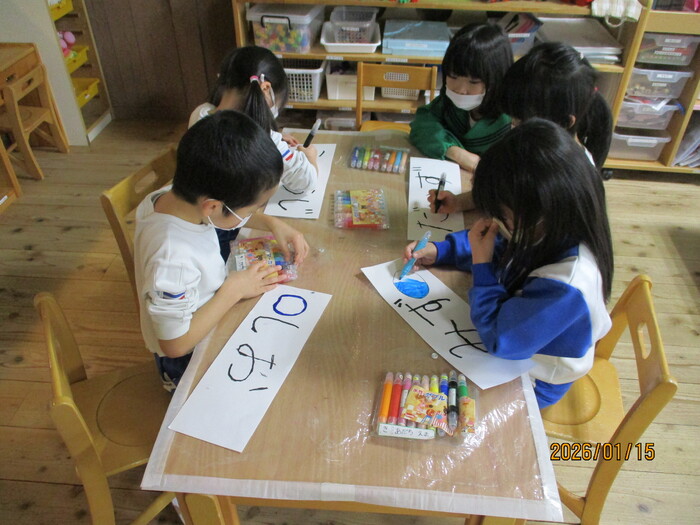 「絵描こうか?」 「ももさんに伝えるところやりたい!」と 自分な得意なことをいかして役割分担し、伝え方を考えてくれる年長児の姿が印象的でした。 | ||