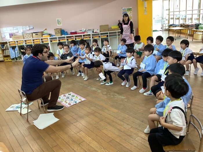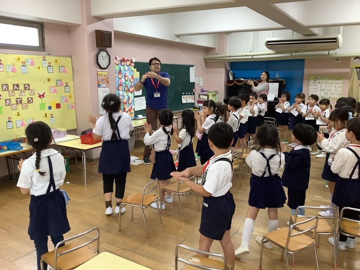 いつも元気で明るいネイティブ講師♪ 子どもたちに名前で声を かけてくれます | ||