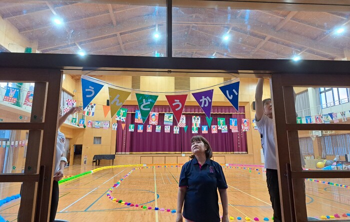 7月に予定していた運動会!! 新燃岳噴火の影響(大量の火山灰の為)で、延期になった運動会がいよいよ明日行われます❤ 運動会の準備、設営を、頑張っている先生達~ 今からドキドキしています 明日の運動会では、楽しい思い出がたくさんできるといいな(*^^)v | ||