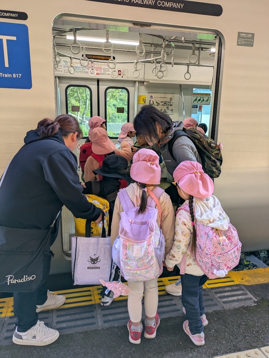 電車の旅 きりん組(年長組)さんだけで、電車に乗り遠足に行きました 目的地は西都城駅近くの公園!! 子ども達は、前日からわくわくドキドキでした(*^^)v 天気も良く公園でたくさん遊び、手作り弁当やおやつも大喜びで食べてました 帰りの電車でも思い出話で盛り上がっていましたよ❤ きりん組の保護者の皆様、お見送り、送迎ありがとうございました 楽しい思い出が一つ出来ました | ||