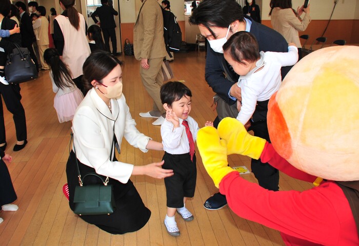 3年ぶりに入園式を行うことが出来ました。 温かな雰囲気の中で式が始まり、保育士と一緒に『どんないろがすき』の手遊びをしたり、スペシャルゲストとしてアンパンマンも来てくれたので、子ども達も大喜びでした。 24人の新しいお友だちが増え、たかはた北保育園でわくわくどきどき楽しい園生活を送ります。 | ||