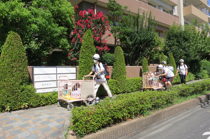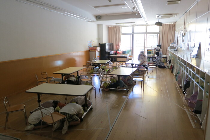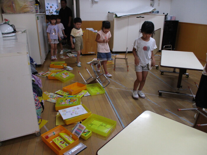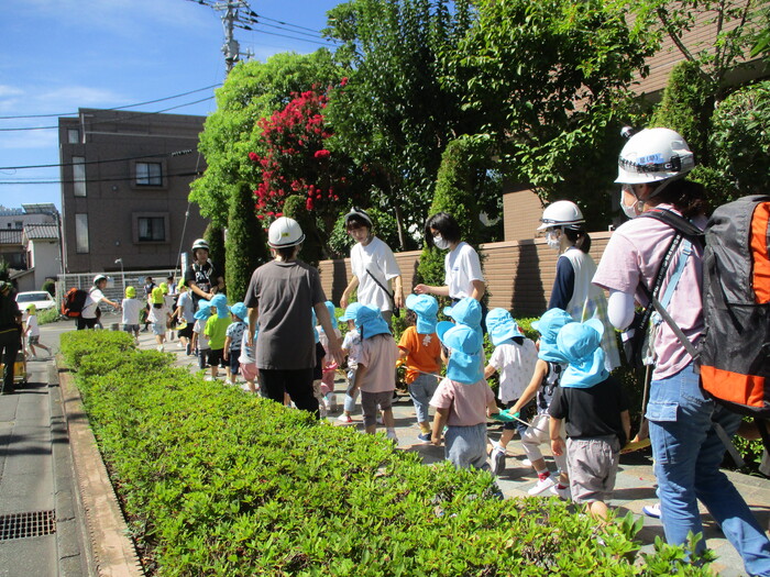 9月2日(金)に緊急園児引き渡し訓練を行いました。今回は地震の影響で火災が発生したことも想定し、二次避難訓練として二次避難場所である潤徳小学校まで避難をしました。 各クラス担任の話を聞き、素早く落ち着いて避難することが出来ました。 今後ももしもの時の災害に備えて様々な訓練を子どもたちと一緒に行い、いざという時に行動出来るようにしていきたいと思います。 | ||