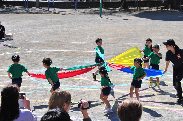 今年度、たかはた北保育園は20周年を迎えました。 皆さまのご協力、ご支援があり迎えられました。運動会は、デイズ二―20周年とコラボし、子どもたちもかわいいミッキーマウスのカチューシャを付けたり、デイズニーの曲で踊りました。 乳児クラスは、デイズニーのテイガーが登場しはちみつをプーさんに届けたり、お父様、お母様の所までよーいドン!と、走ってギューッと抱きしめてもらいました。 幼児クラスは、真剣な表情で、跳び箱を跳んだり、平均台を歩いたり、出来た時は笑顔は素敵でした。また、キラキラしたポンポンを使ったかわいいお遊戯、風になびいてかっこいい旗を使ったお遊戯やパラウエーブ。等沢山の声援をもらい、無事に終えることが出来ました。そして今年も職員からのサプライズダンスをしました。沢山の拍手を頂きました。皆さまのご協力ありがとうございました。 | ||
