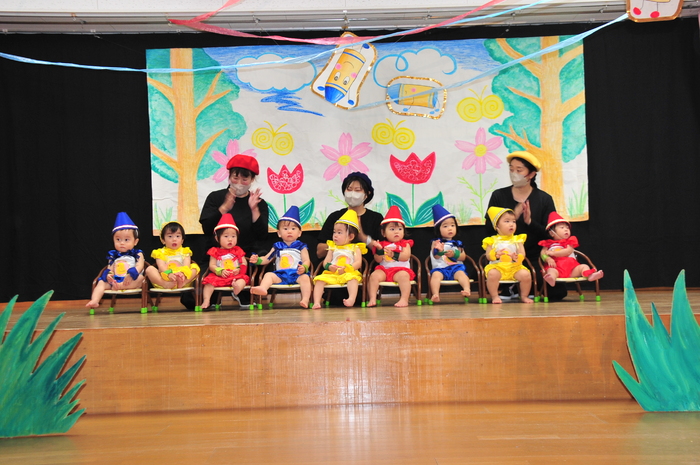 12月2日(土)におゆうぎ発表会を行いました。運動会後から、日々楽しんで練習に取り組んでいた子どもたち。本番では、華やかな衣装を着て嬉しそうに笑顔を見せたり、大勢の観客に緊張する姿も見られました。 舞台に立つ子どもたちの立派な姿に、職員も心を打たれ感動しました。 | ||