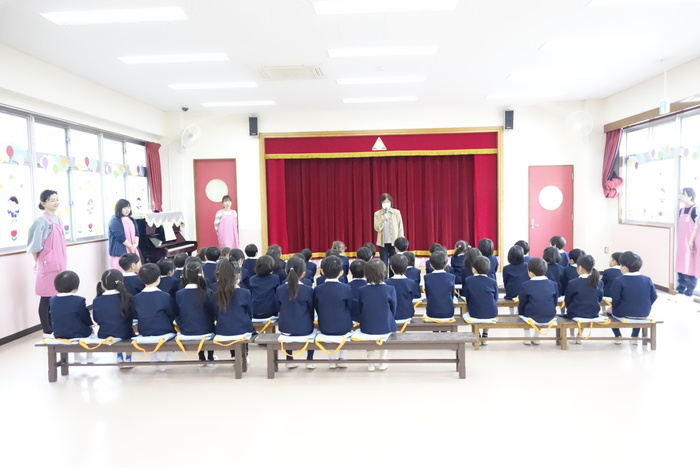 姿勢を正し、凛とした姿で園長先生のお話を聞く姿がありました。