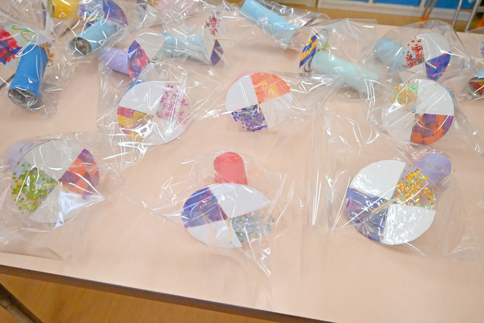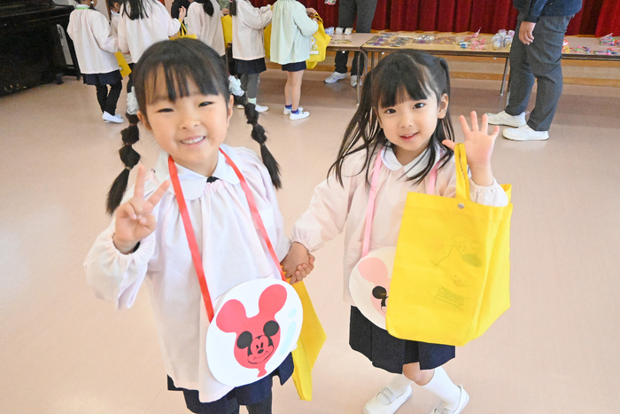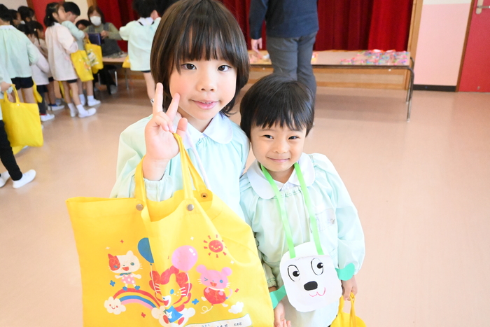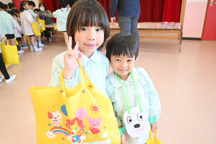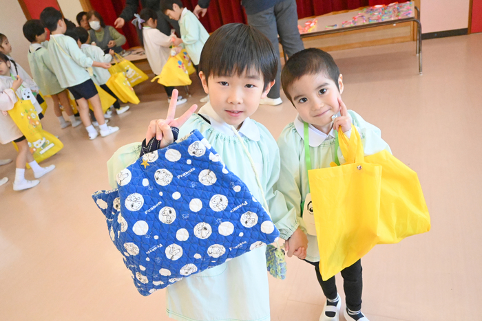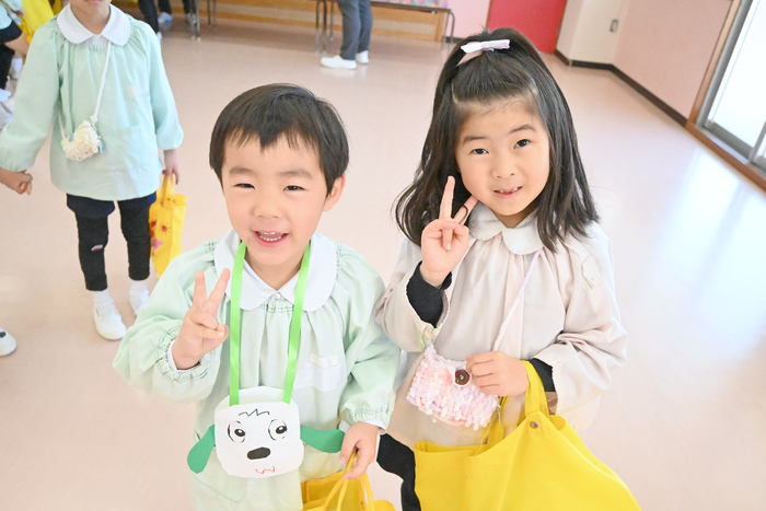 子どもたちが楽しみにしていた「お買い物ごっこ」を行いました。 各学年ごとに手作りのおもちゃを作りました。 お金を入れるお財布も自分たちで制作し、準備はバッチリ! 当日は、教室に並んだお店へ友達と一緒にお買い物へ。 「どれにしようかな?」と迷いながらも、やり取りを楽しむ姿がたくさん見られました。 さらに2階ホールには園長先生のお店もオープン! 「園長先生から買えたよ!」と、とても嬉しそうな表情を見せていました。 自分で作った品物やお財布を使いながら、お買い物の楽しさを味わうことができ、子どもたちにとって素敵な体験となりました。 | ||