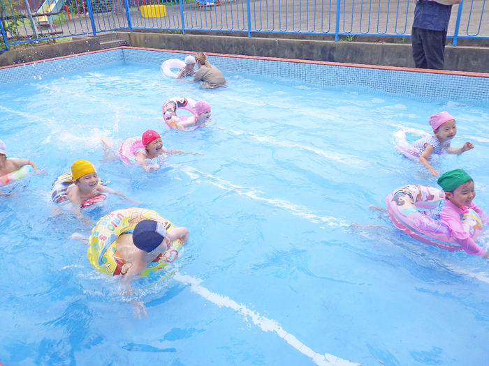 プールが始まる前日に、年長組の子どもたちがブラシやぞうきんを使って 園庭にある屋外プールのお掃除をしてくれました。 みんなで力を合わせ、一生懸命 綺麗にしてくれる姿がとても頼もしかったです。 次の日には、いよいよ全園児が学年ごとにプール遊びを楽しみました。 水の気持ちよさを感じながら、笑顔いっぱいで過ごす子どもたちの姿が見られました。 | ||