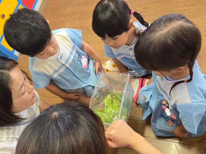 7月15日(火)すみれ組 『小松菜』収穫・観察 | ||