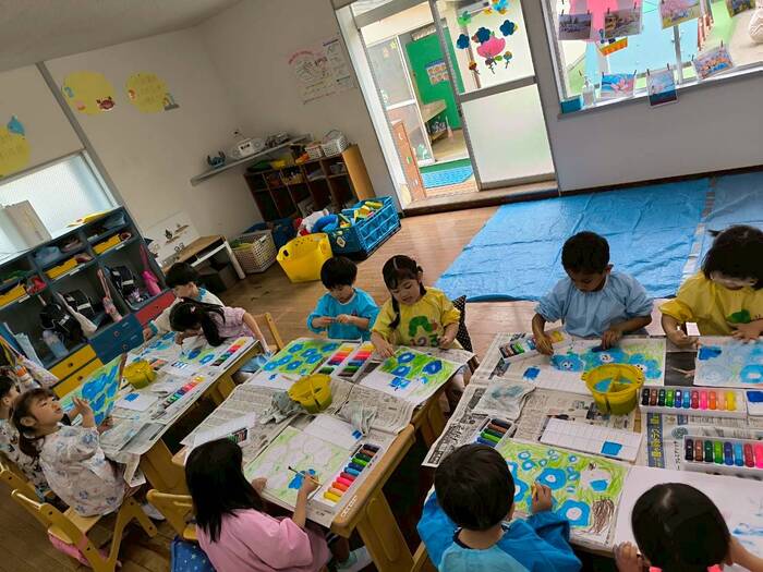 4月24日(木)すみれ組 『ネモフィラ』絵の具活動 | ||